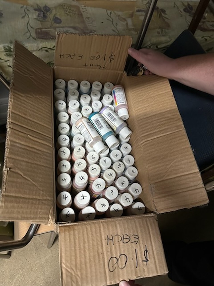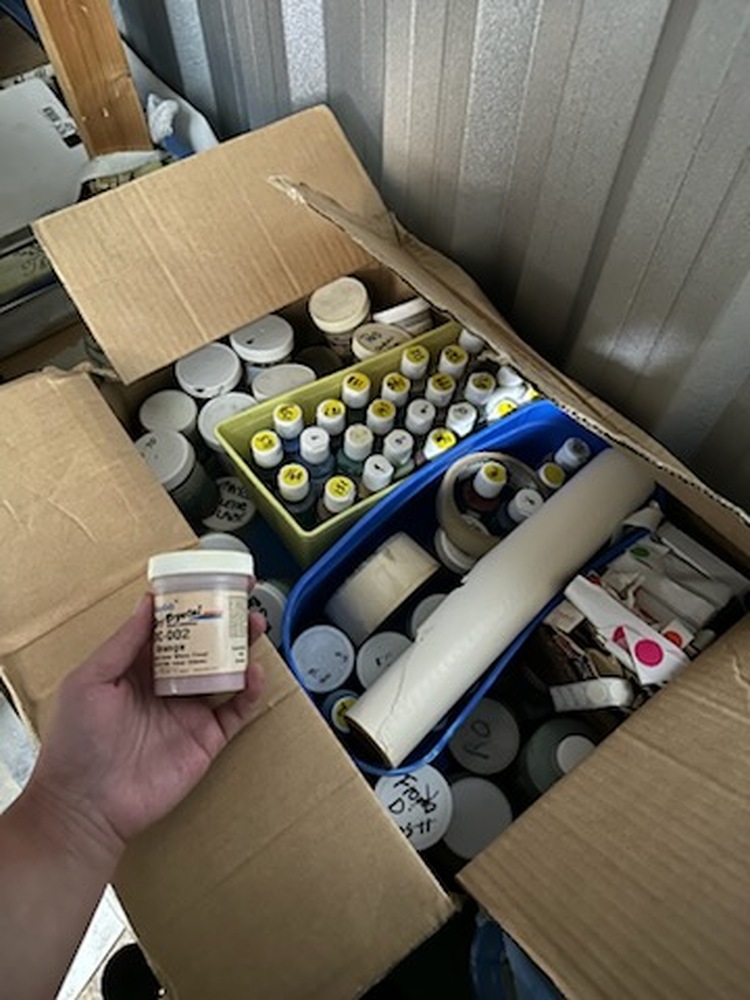 Boxes of acrylic paint