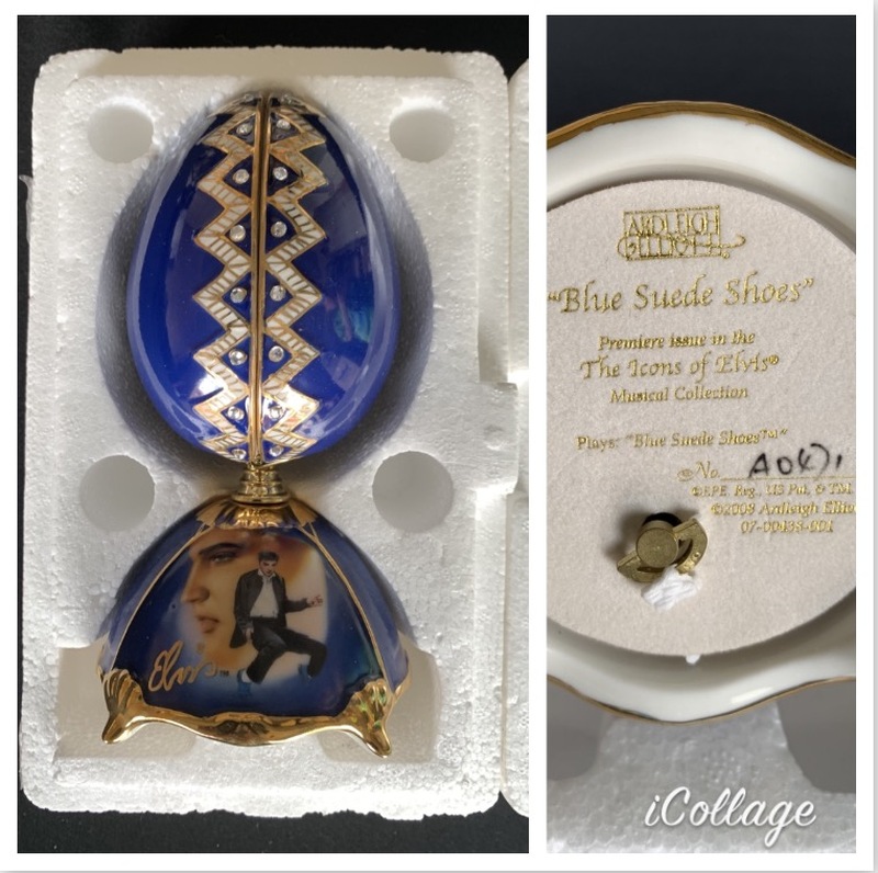 • Ardleigh Elliot Elvis Presley Faberge Style Collector Egg "Blue Suede Shoes"