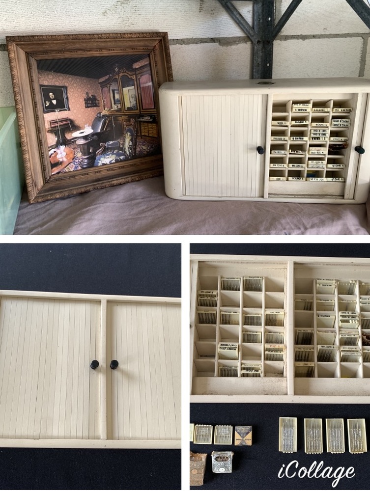 • Antique Dentistry Tools in a Wood Display Cabinet with sliding/rolling doors.