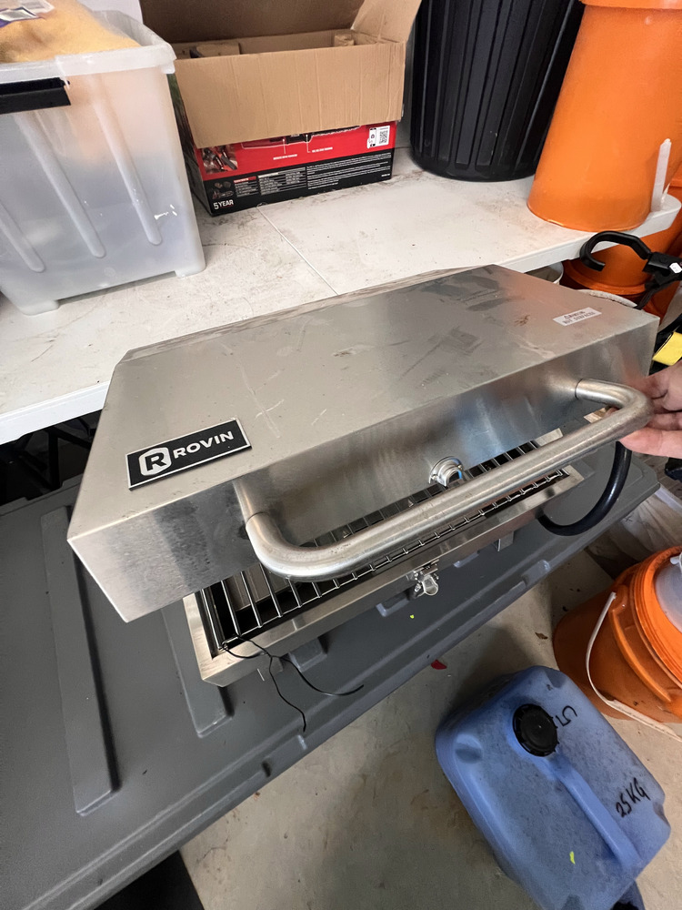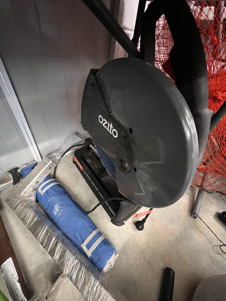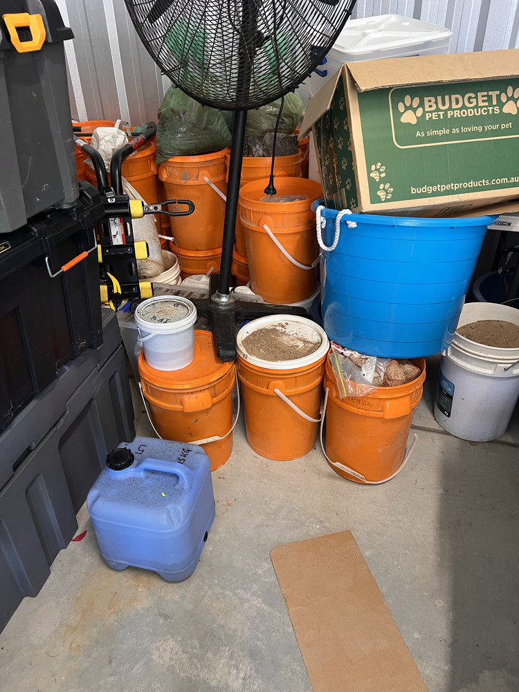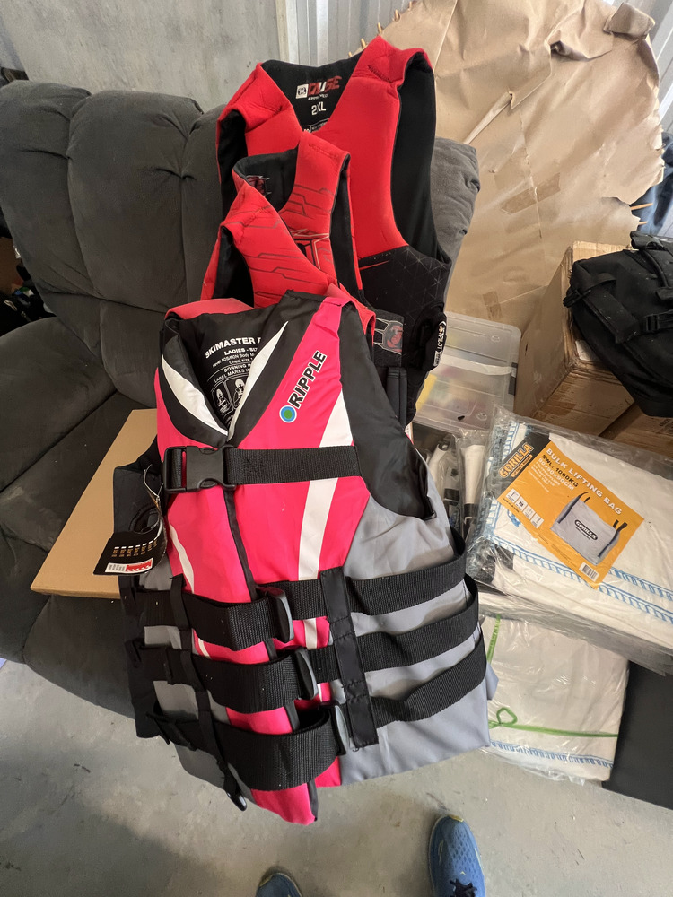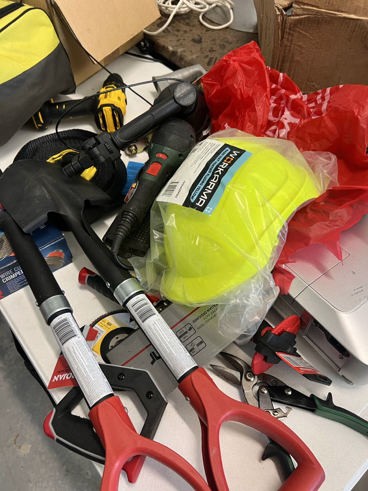 Multiple fishing rods, household furniture, spare wheel, jerry cans, camping equipment, portable upholstery cleaner, multiple eskies, multiple bulk lift bags, assorted shed equipment, multiple gardening tools, large box of bolts, assorted small hand tools, office chair, workwear, bar fridge, fishing gear, Milwaukee tough shell heat jacket, jet ski jackets, office furniture, snowboard bag, pet potty mat, grey suede lounge chair, some household furniture, golf clubs, men's work boots, flippers, kitchenware, electric portable fridge, power cooker, and stock pot set, tent, stretcher bed, power inverter times two, portable hand electric tools, rock and soil samples, bike rack, fold-out outdoor tables, portable shower set, tent, multiple eskies, multiple industrial containers, barbecue, chainsaw, paddle for kayak, gumboots, two electric mowers, one hand push mower, satellite phone plus case, toolboxes, assorted tools, multiple gas bottles, pedestal fan, hydrochloric acid, drop saw, camp chair, pro-rack roof racks, Electric-powered gardening tools, soundbar, workhorses, cool cabana, electric extension cord, Everfit brand fitness machine, queen bed mattress, poor condition, trestle, tables fishing nets, socket set, portable battery.