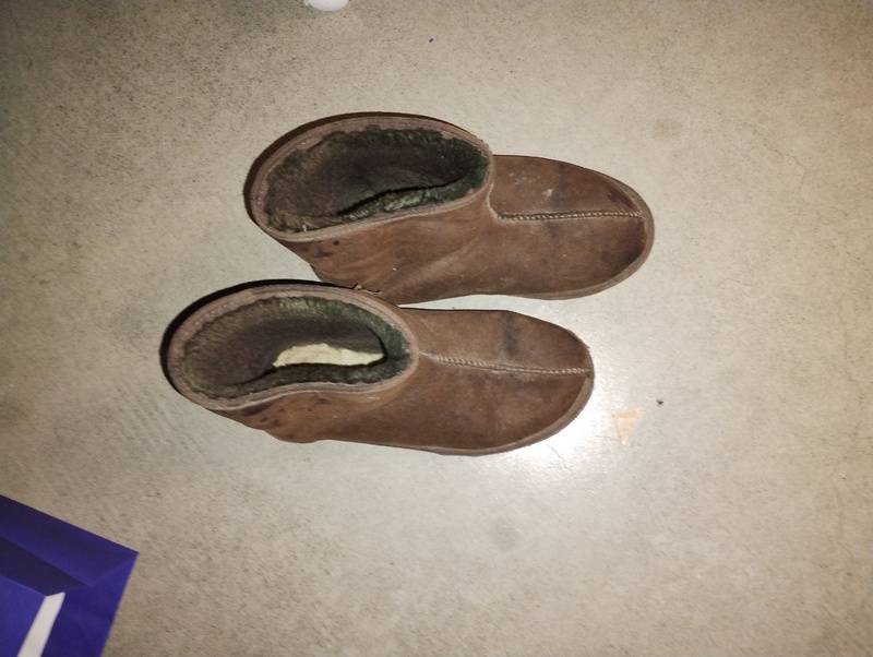 brown synthetic wool slippers