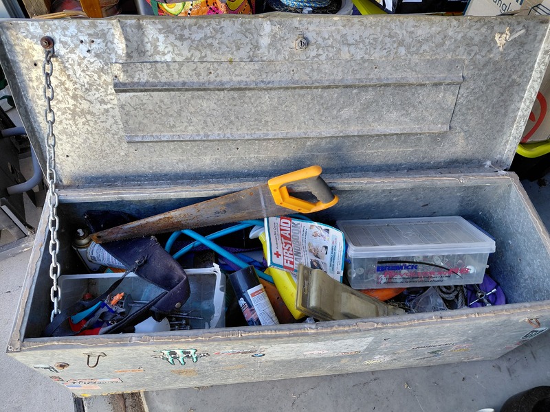1 x metal chest with miscellaneous shed items