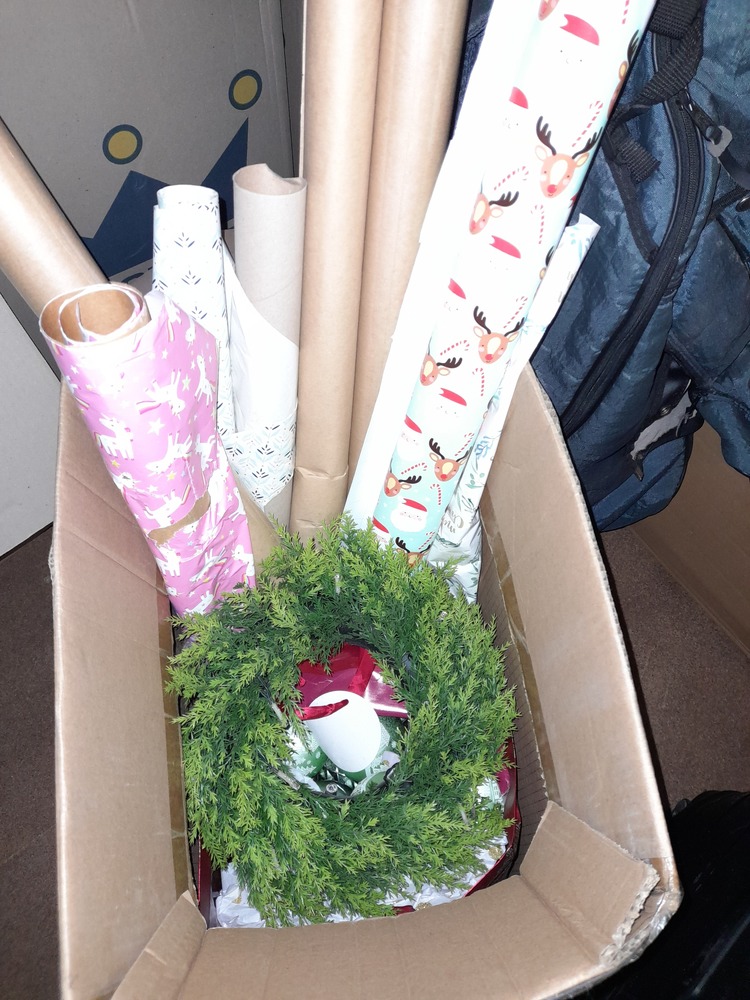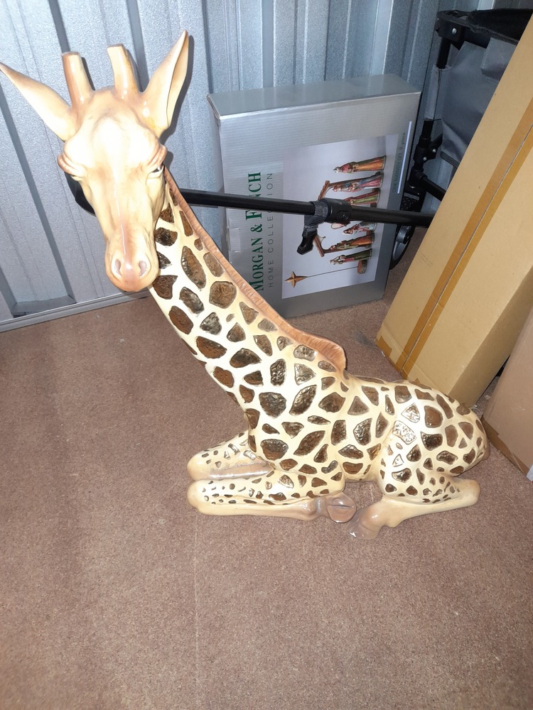 Giraffe statue, Vera Wang Wedgwood set, washing basket, Xmas items such as wrapping paper, tree and nativity set, outdoor porch light, assorted kitchen items - rice cooker, glasses etc.