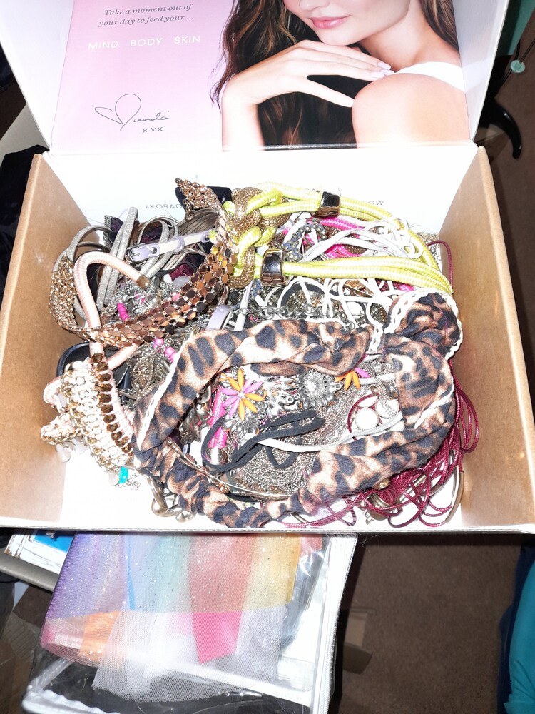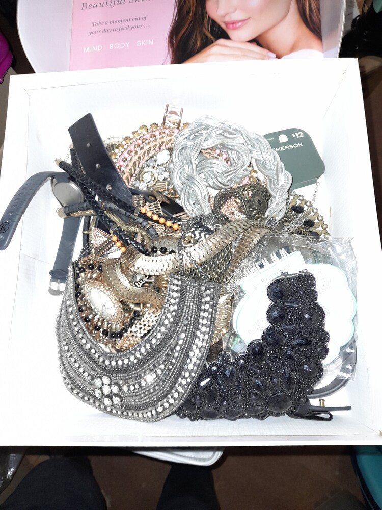 2 x heaters, key holder, cushions, 2 x crystal decanters, assorted books, clothes steamer. suitcase, fake plants, 2 x light shades, box of costume jewellery, box of handbags, box of men's and women's shoes.