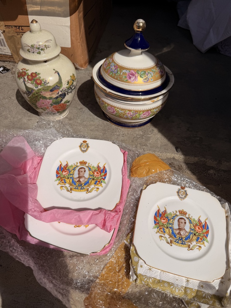Box of plates and mugs