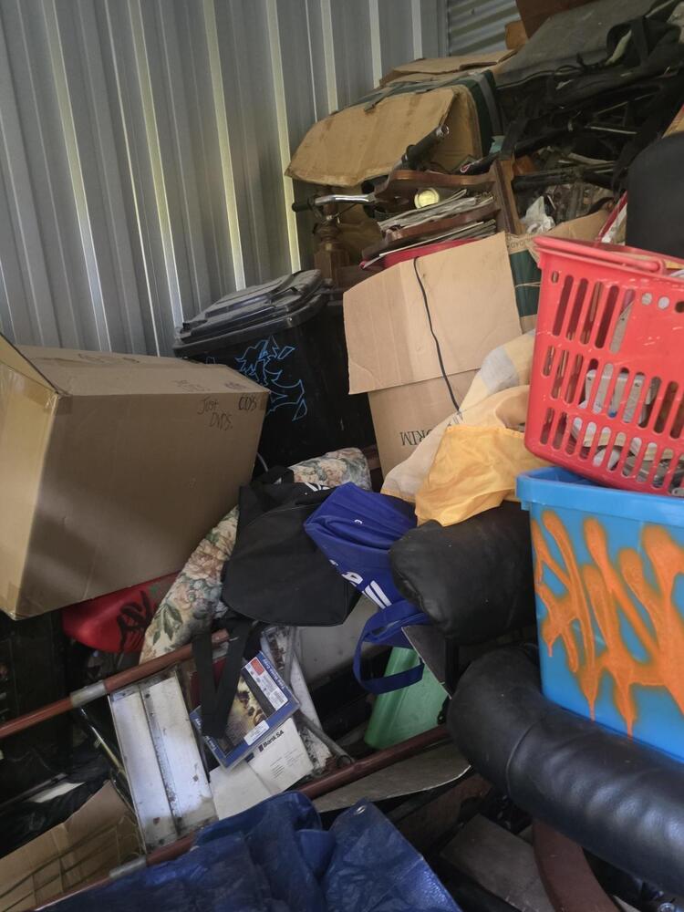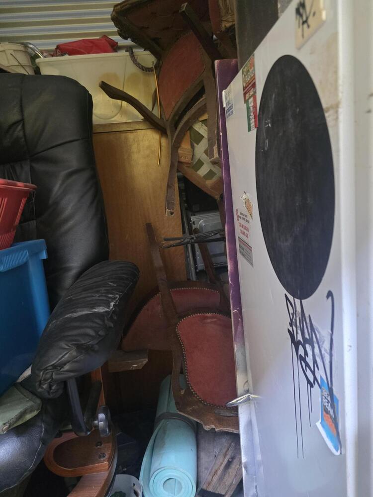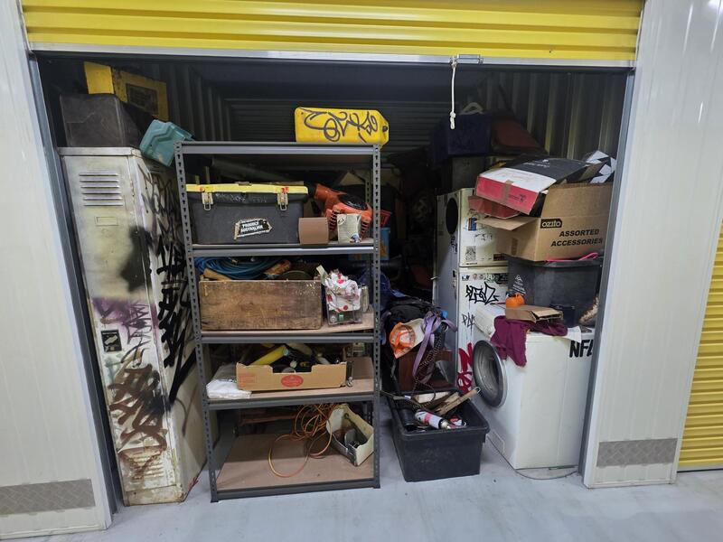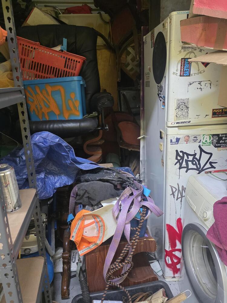 From what we can see inside this unit we have,washing machine, fridge, household items, bags etc. We could not see all the way in so who knows what else might be in this unit…