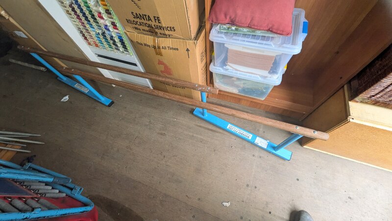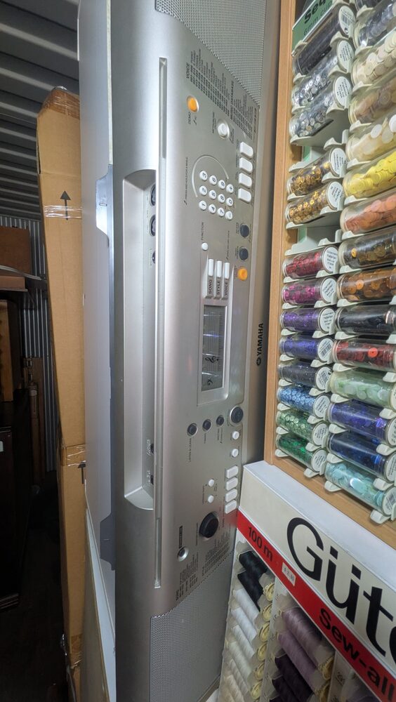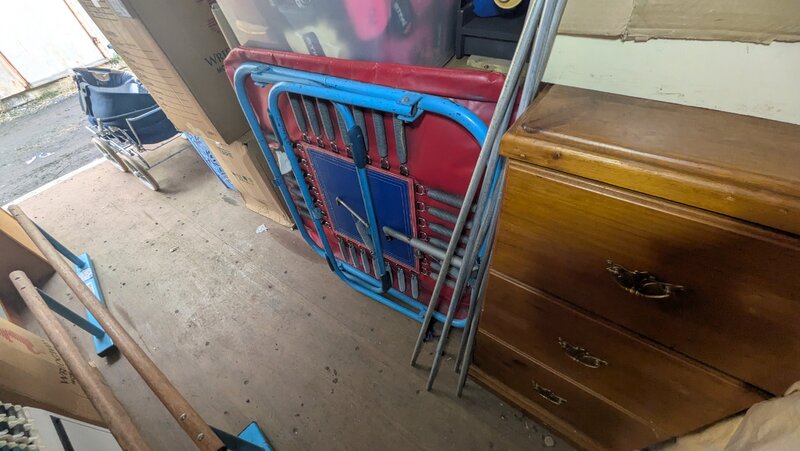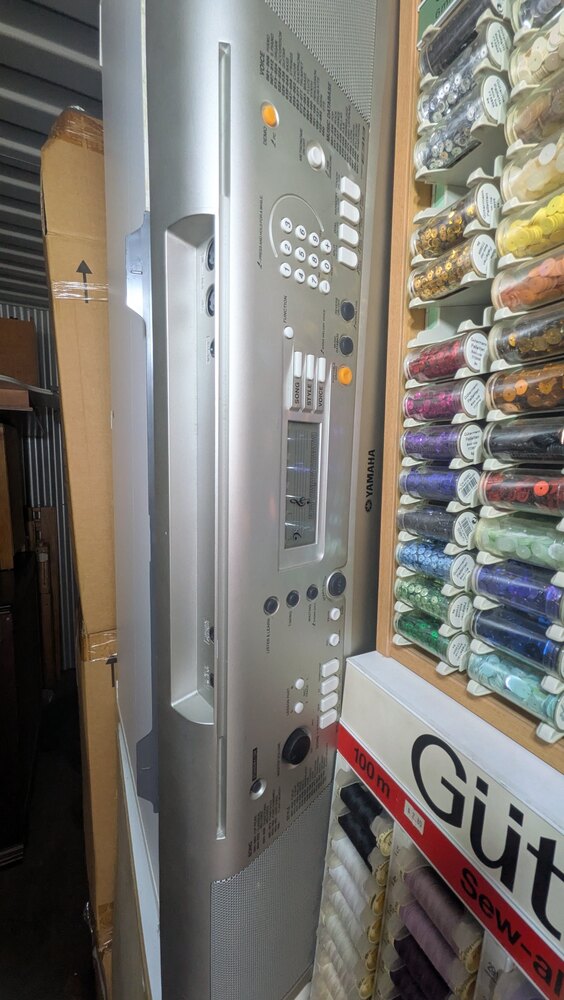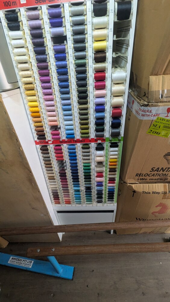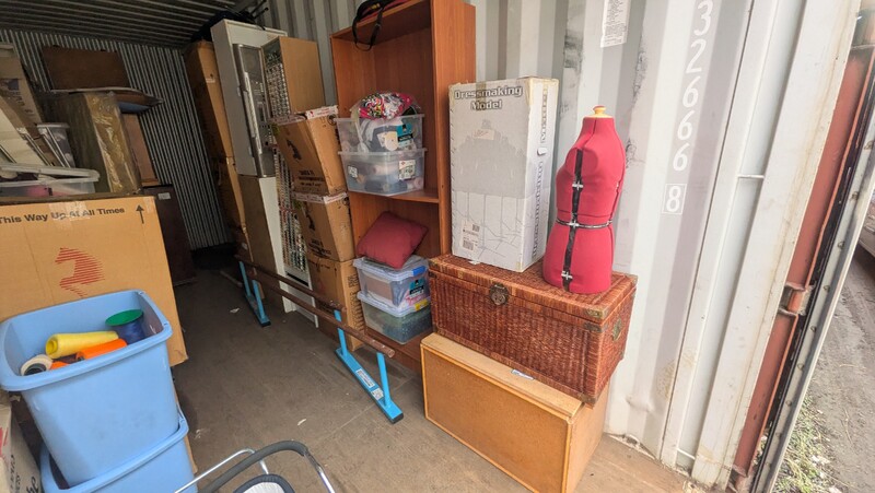 Lots of sewing items - high quality Gutermann threads, sequins, dressmaking dummys/models, household furniture and goods, including tennis raquets, bed frame, cupboards. shelves, pram, skateboard etc