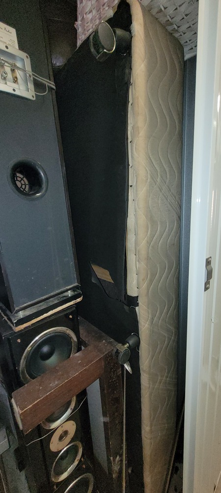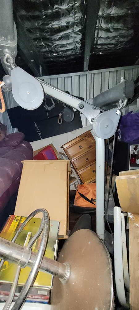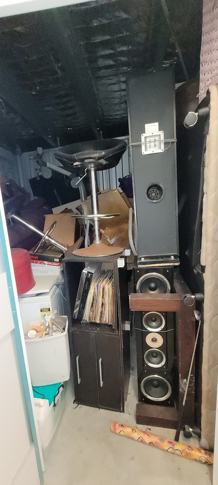 Mattress & base, Speakers x 12, Bar stool x 3, Bedside x 2, Washing machine, Foot stool, Assorted records, DVD / VCR recorder, Trolley, Assorted fishing rods, Lamp, Hose, Gym equipment, Fridge, Stereo, Bookcase, Cane basket, Assorted unopened boxes, Chairs x 4, Coffee table, timber cabinet, Assorted household items & BBQ.