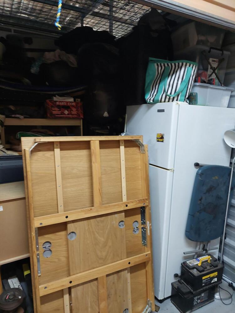 From what we can see inside this unit we have, furniture, fridge, washing machine, household items and various bags and boxes all unopened. We could not see all the way in so who knows what else might be in this unit…