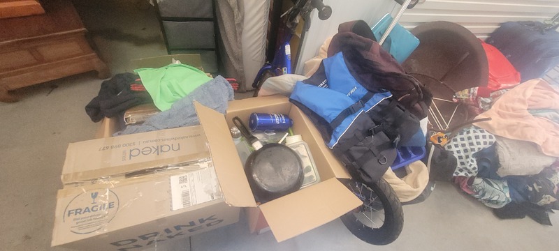 Assorted fishing rods, Washing machine, Dryer, Microwave, Small scooter, Camp chair, Office chair, Coffee table, Cnr TV unit, Bedside, Lamp table x 2, BMX x 2, Assorted clothing, Clothes rack x 3, Single mattress, Queen Mattress, Single bed frame, Queen bed frame, Recliner x 2, Bookcase, Bean bag, TV x 2, Tallboy, Cube unit, Drawer unit. Body board, Large scooter, Assorted kitchenware, Assorted manchester, life jacket, Fire pit, Suitcase, Shoe rack & Assorted household items.