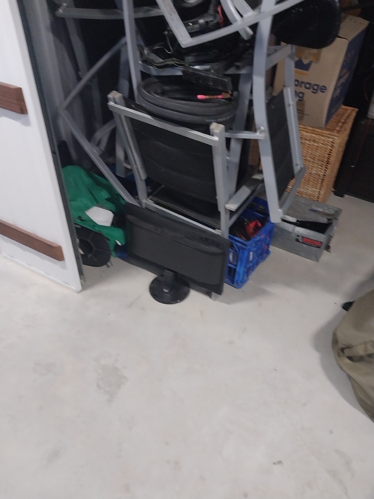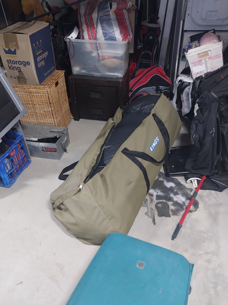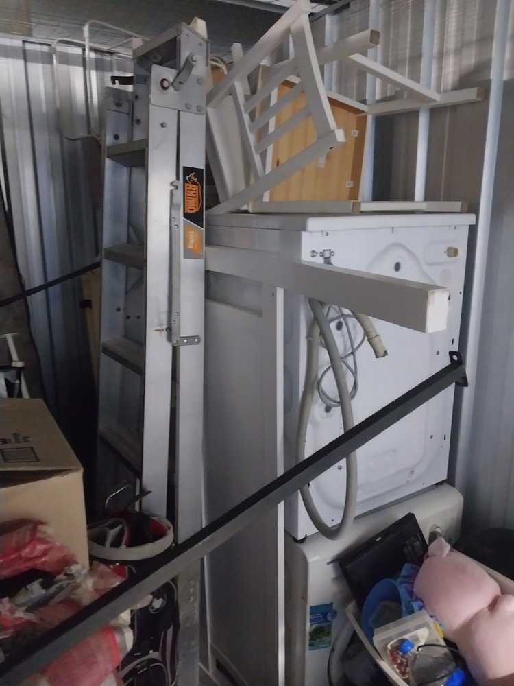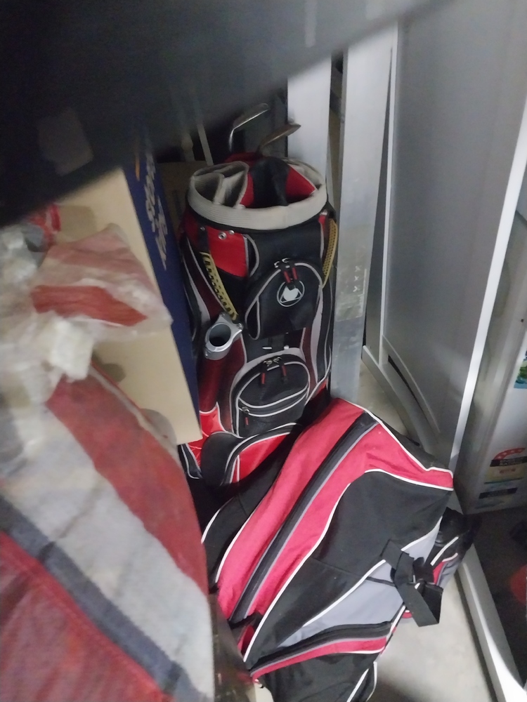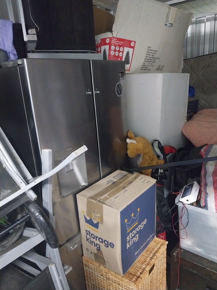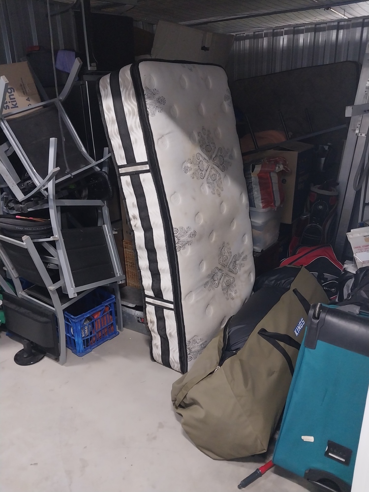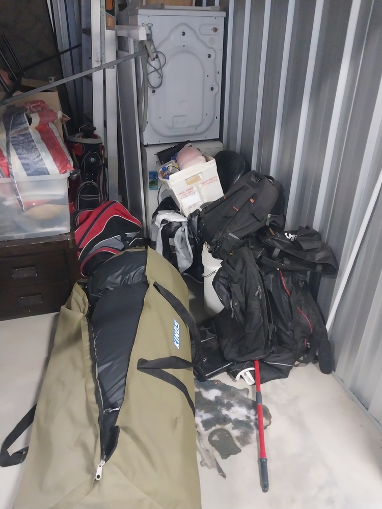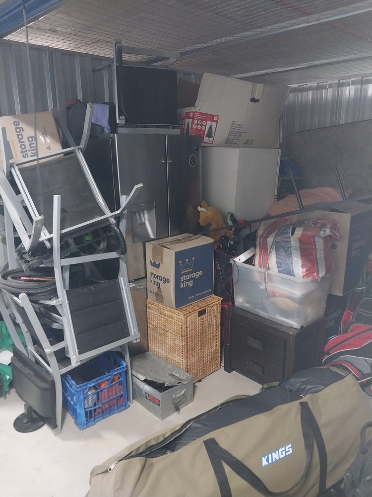 sets of chairs, small tv monitor, tool box, suitcase of clothing, back packs, kings Marquee, Dishwasher/dryer, ladder, other chairs, bedding, mattress, boxes of household items, fridges, set of draws, 2 x sets of golf clubs, Christmas tree