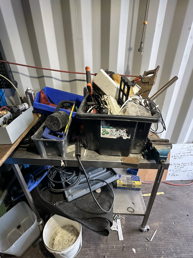 Workbench with timber top and steel frame