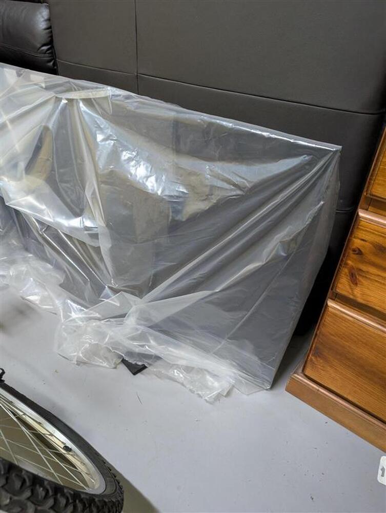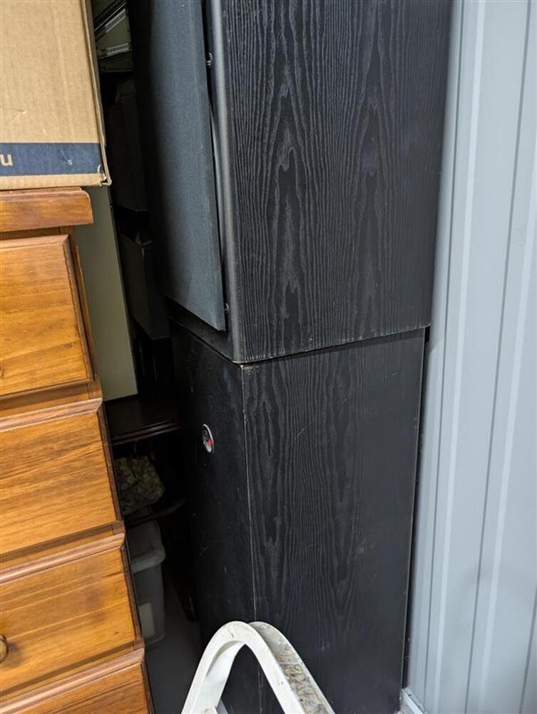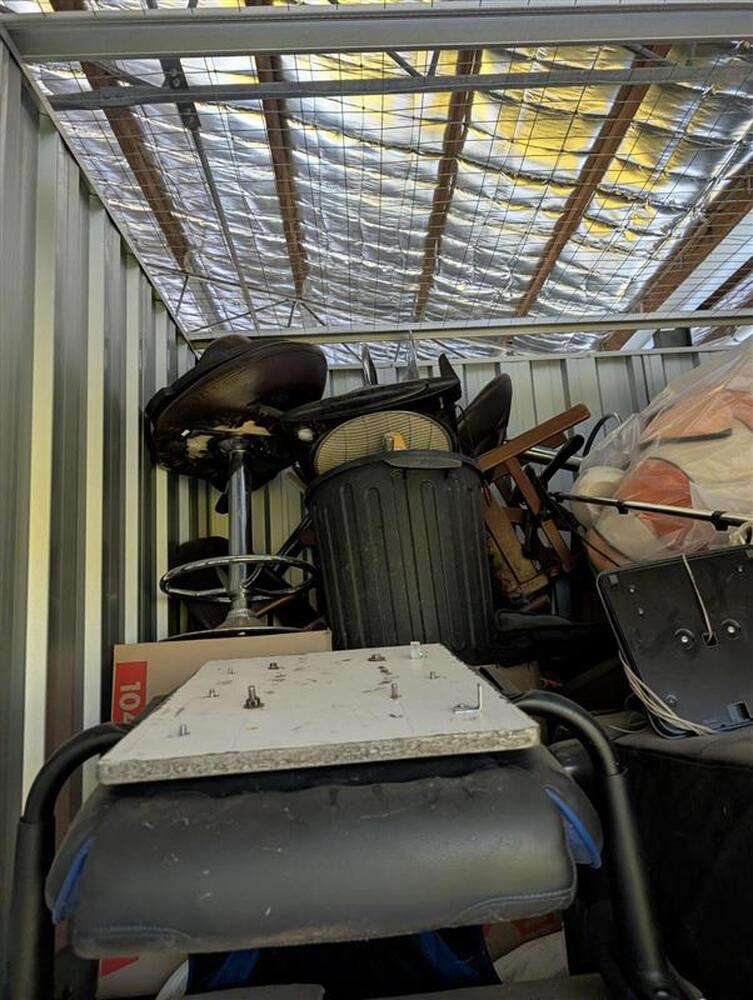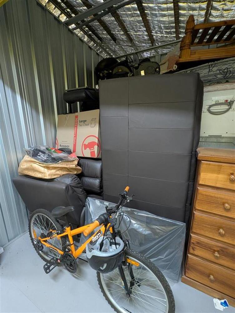 From what we can see inside this unit we have, A bike, Wooden drawers and table, speakers, bedframe, a TV and lots of boxes/bags full of stuff. We could not see all the way in so who knows what else might be in this unit…