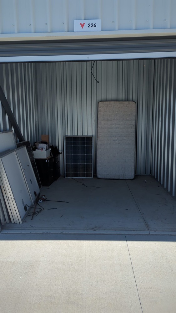 11 solar panels - Sold as is , bedside tables, fishing rods, house hold items