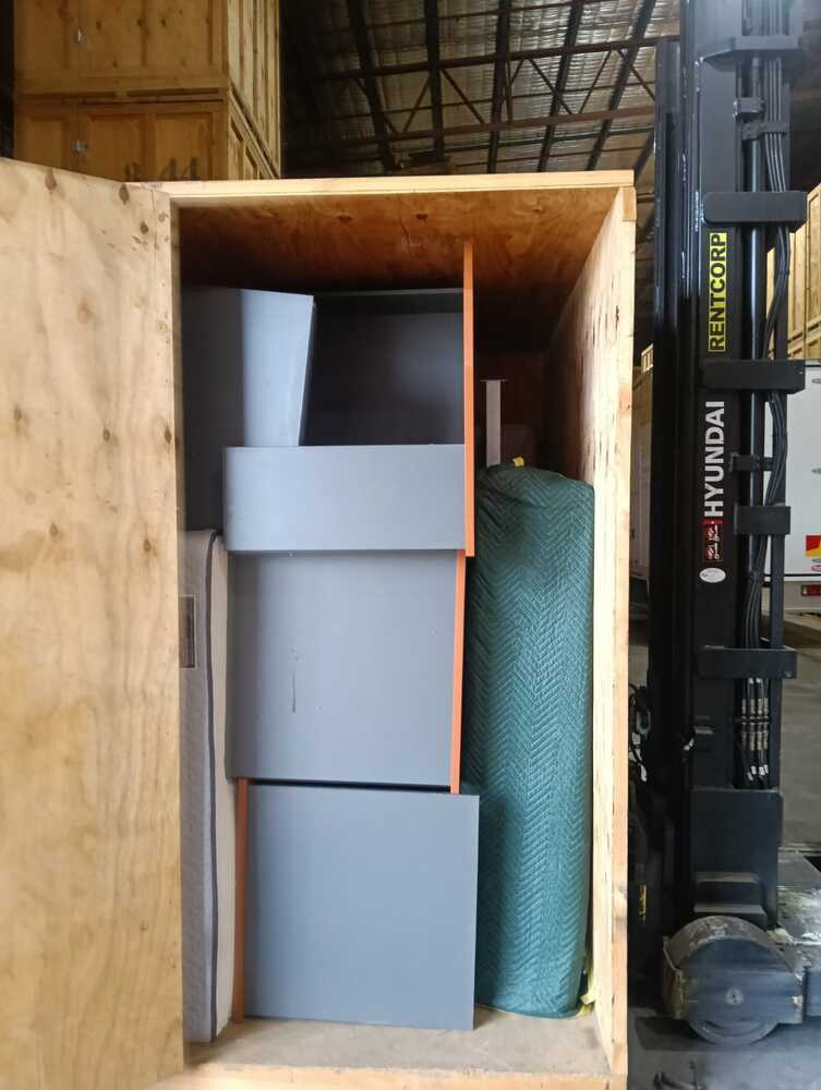 Well stacked module with mixture of household furniture, desk, mattress etc .