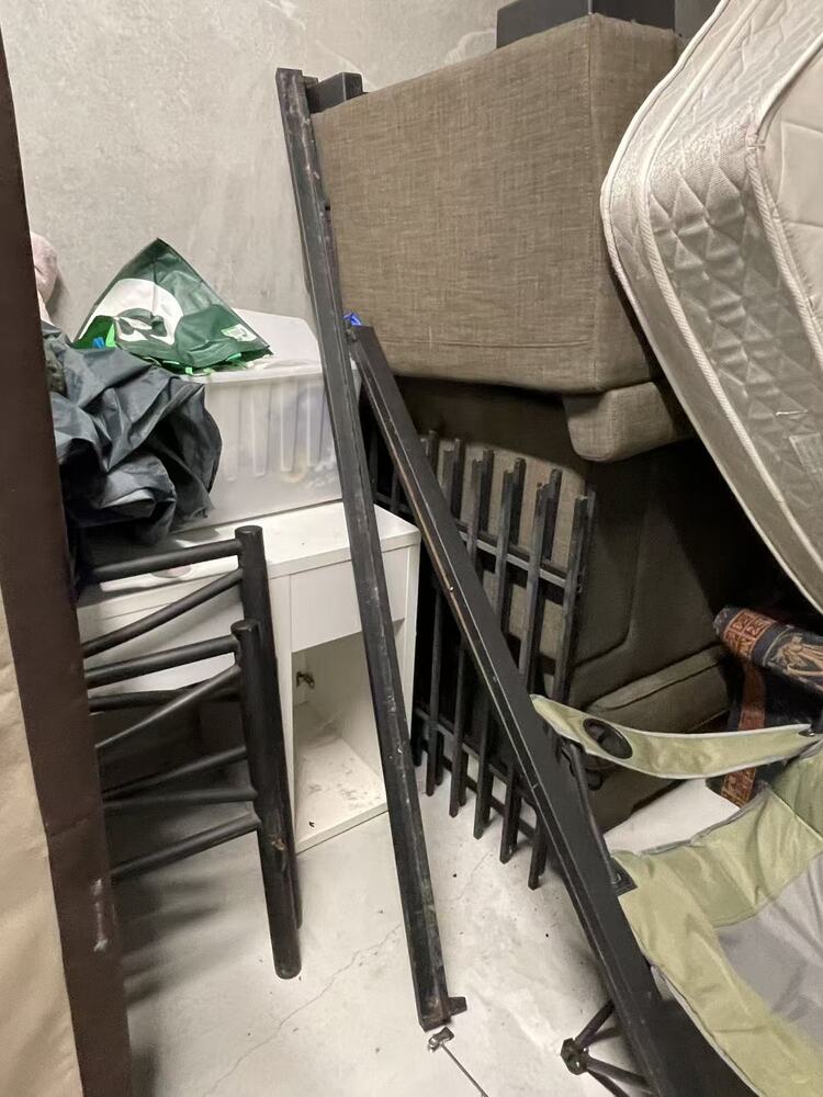 • Several black metal bed frame / railing components