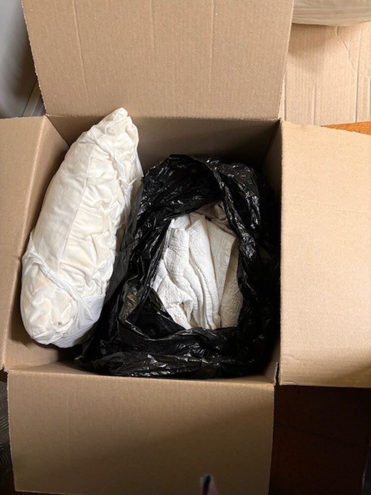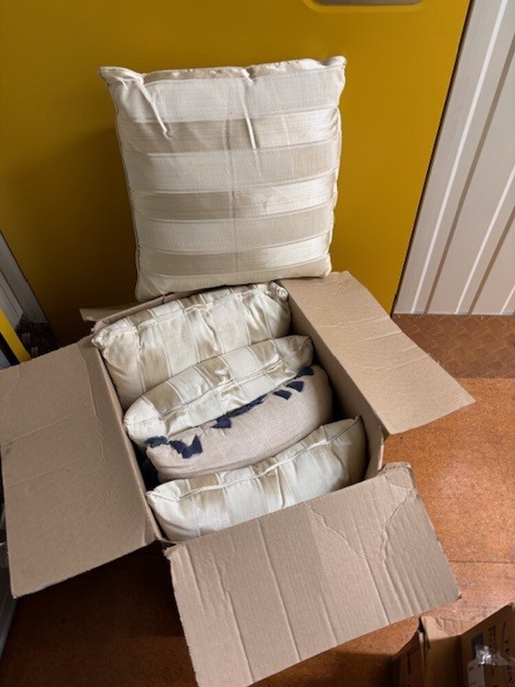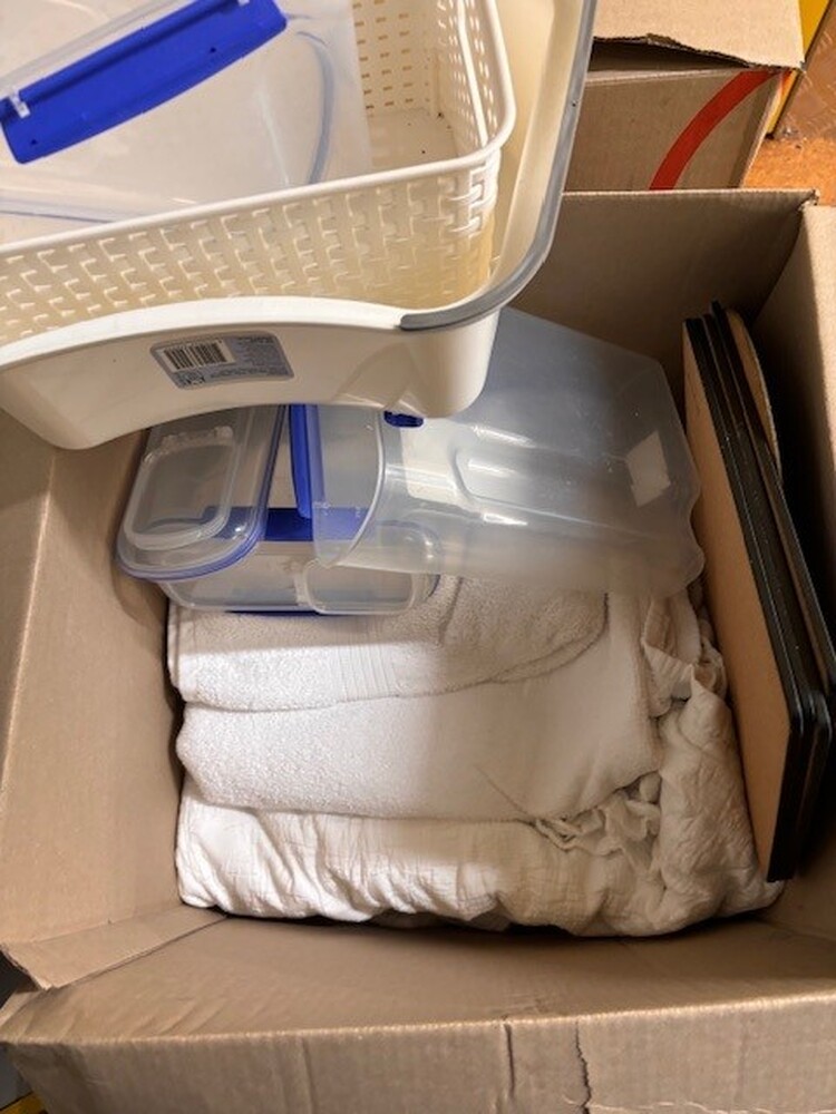 2 x Boxes of clean bedding, cushions and towels
