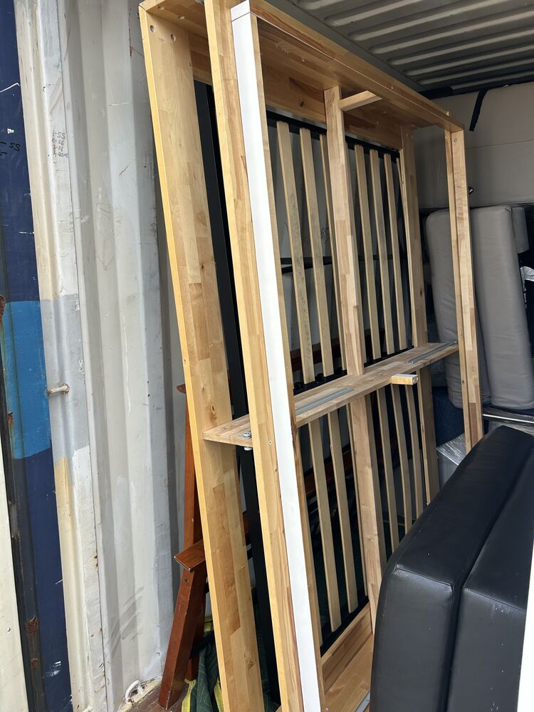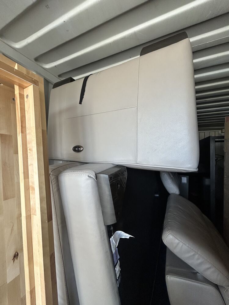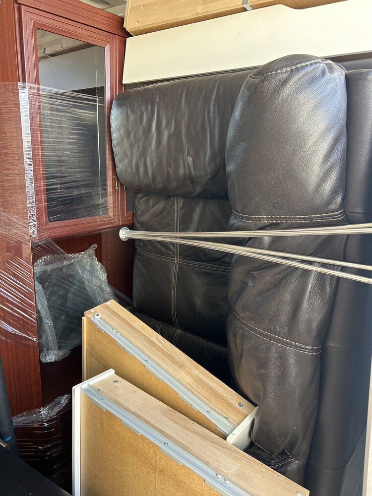 Contents of a small office and home space with various pieces of furniture including sofas, beds, cabinets, office furniture, etc.