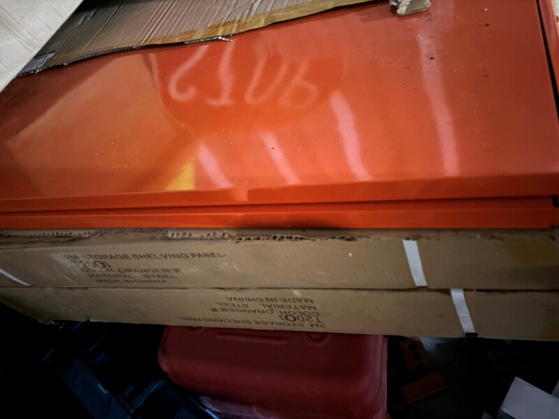 -Orange metal shelving