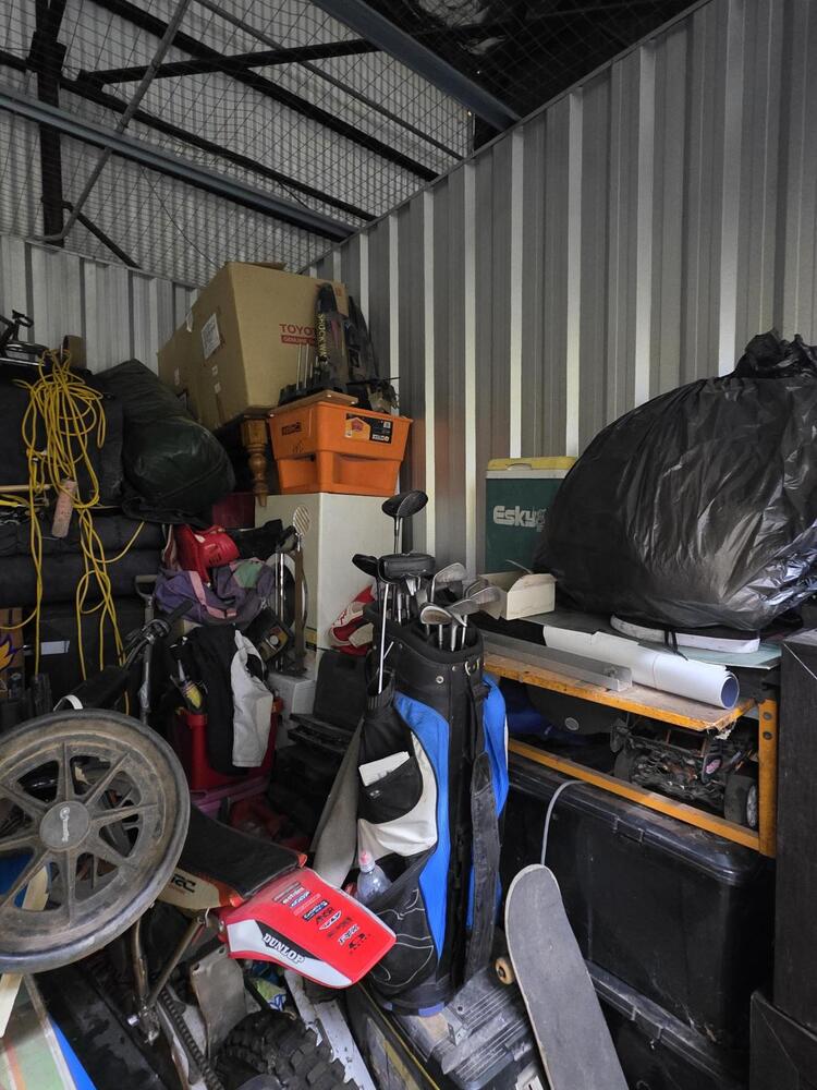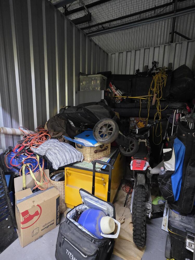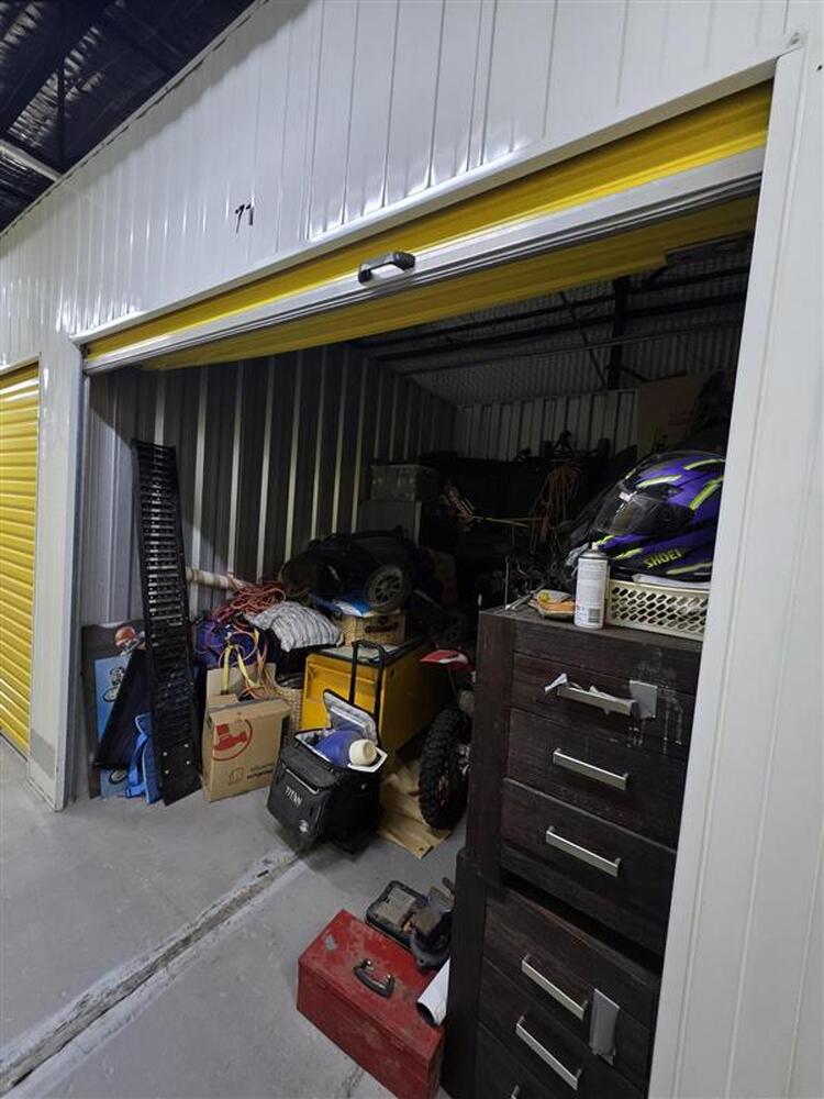 From what we can see inside this unit we have, a dirt bike, household items, clothes, toys etc, We could not see all the way in so who knows what else might be in this unit…