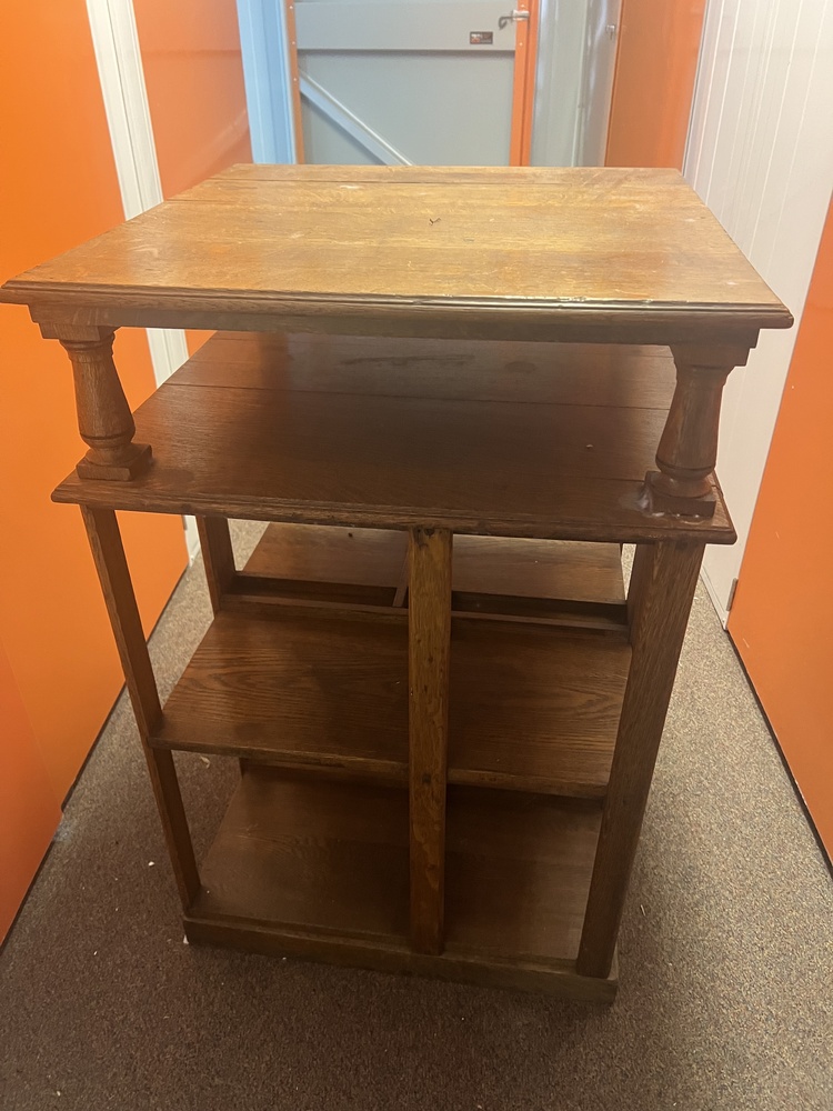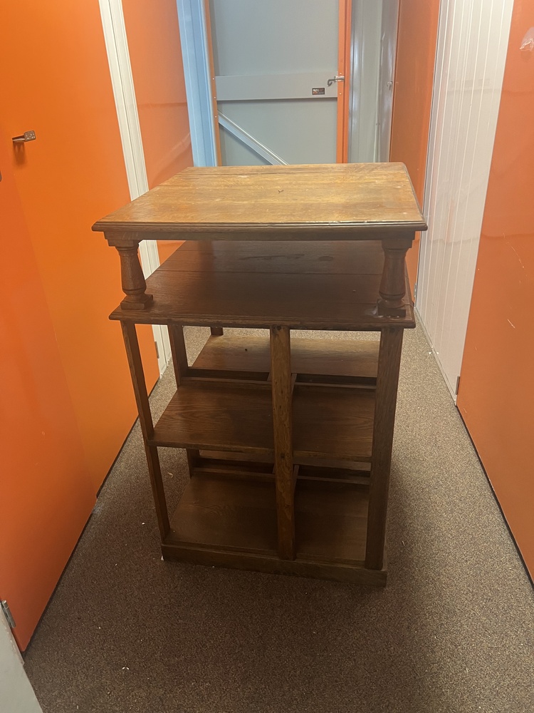 see photos for description - but appears to be a genuine oak antique piece that rotates on a separate central stand. In excellent condition.