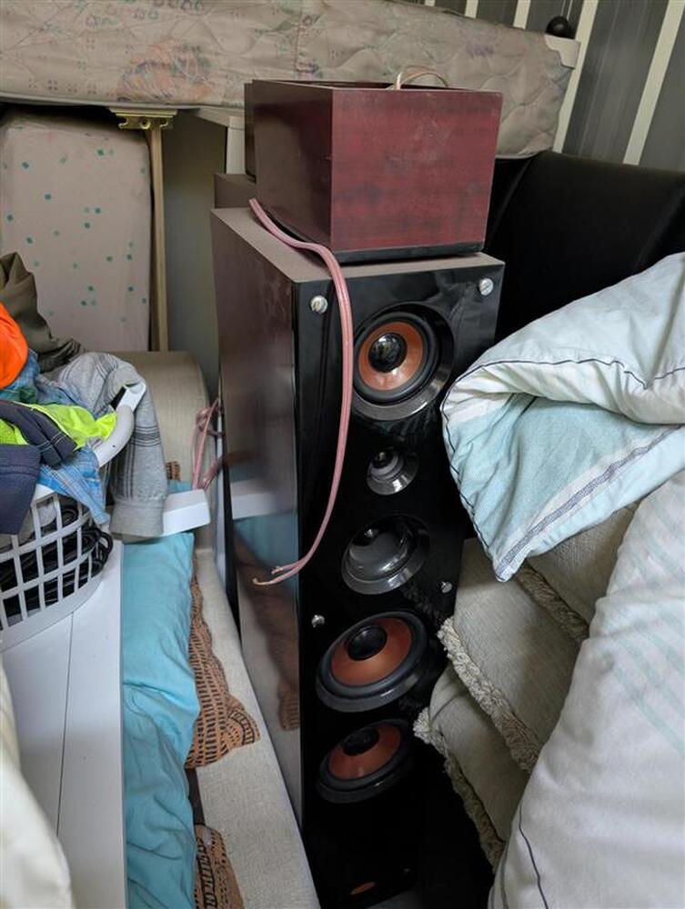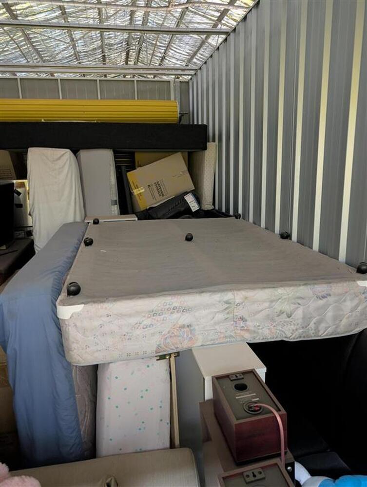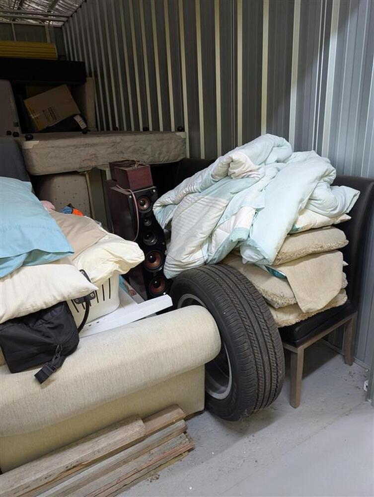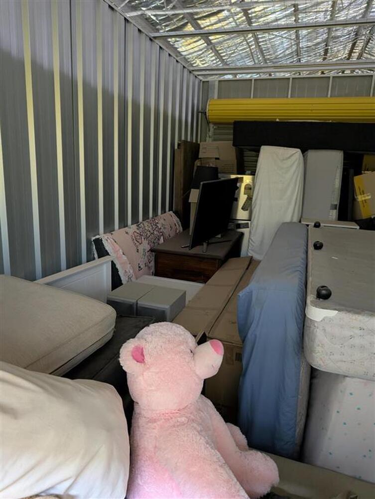 From what we can see inside this unit we have, couches, dining chairs, bed frames, a fridge, a TV and lots of boxes/bags full of stuff. We could not see all the way in so who knows what else might be in this unit…