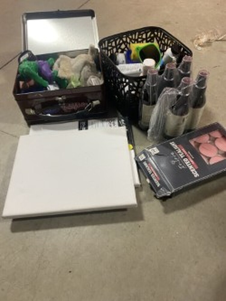 1x Small bag of paints and canvas panels
