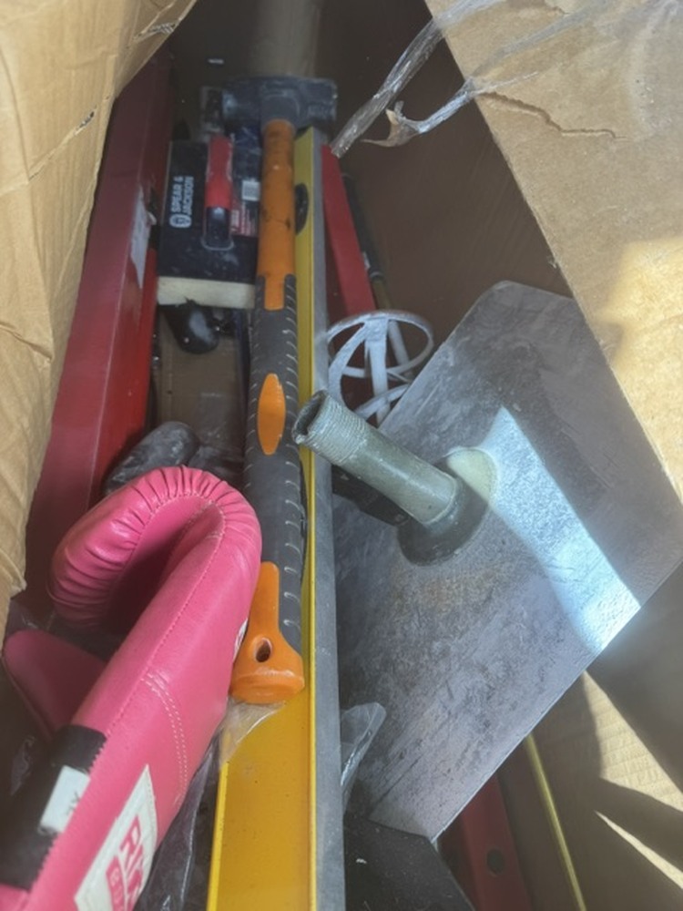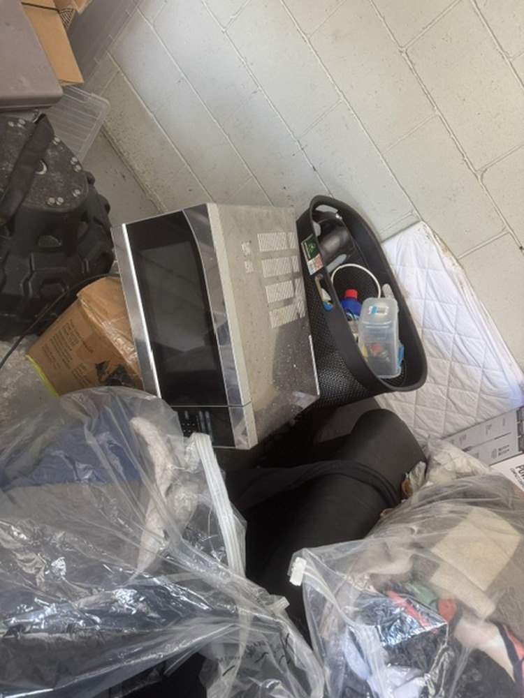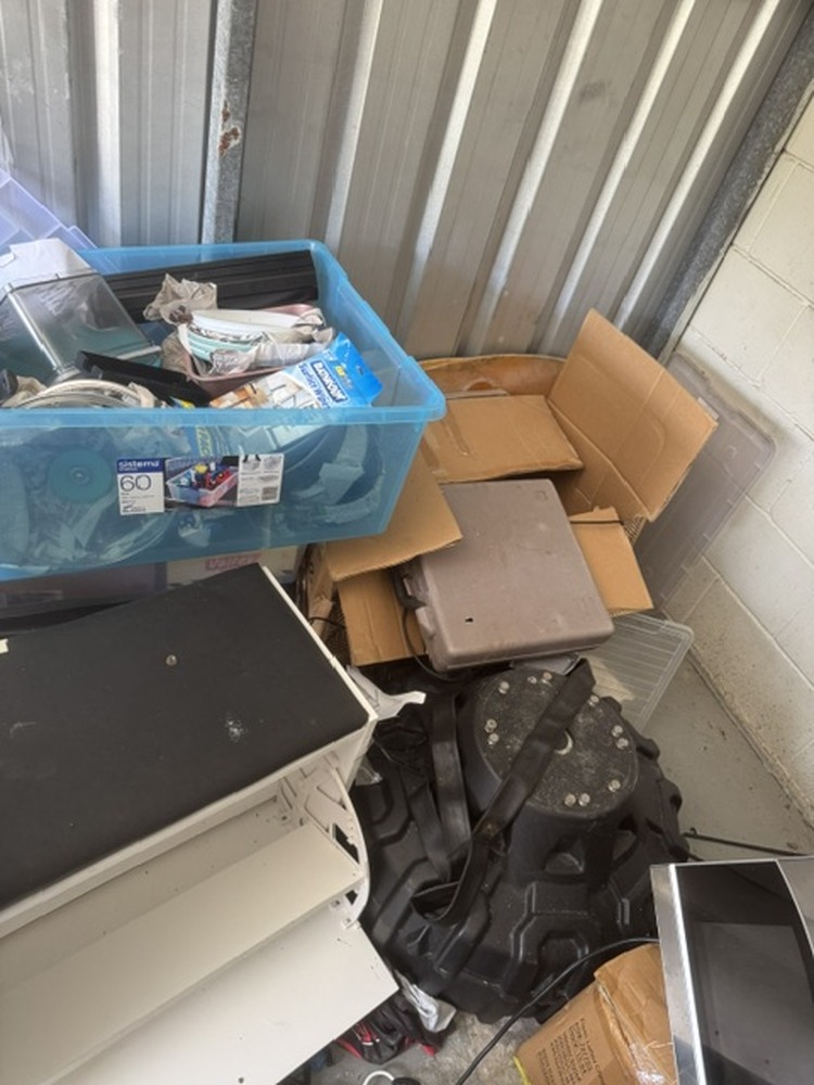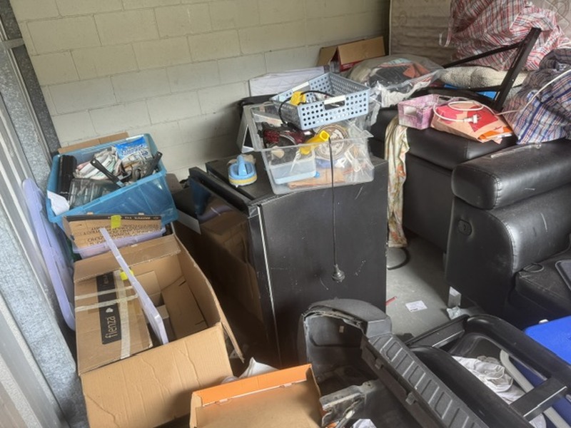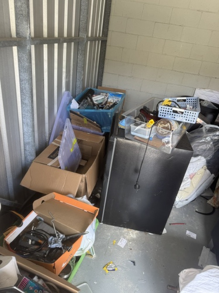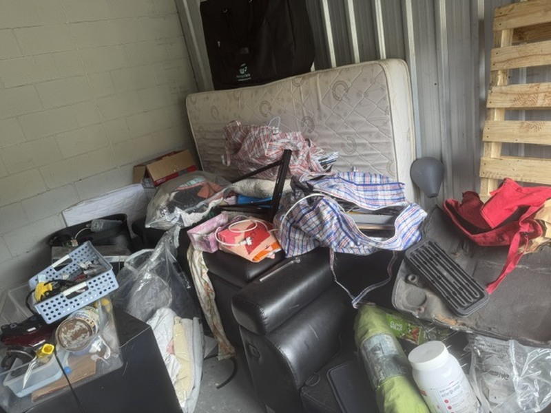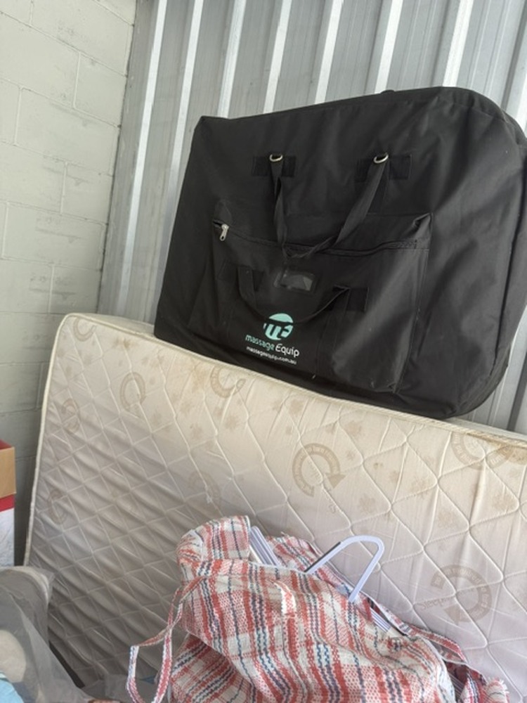 Storage unit with Massage equipment, Boxing Gear, Tools, Fridge, Car Parts, Lounges, Microwave, Mattress and miscellaneous items.