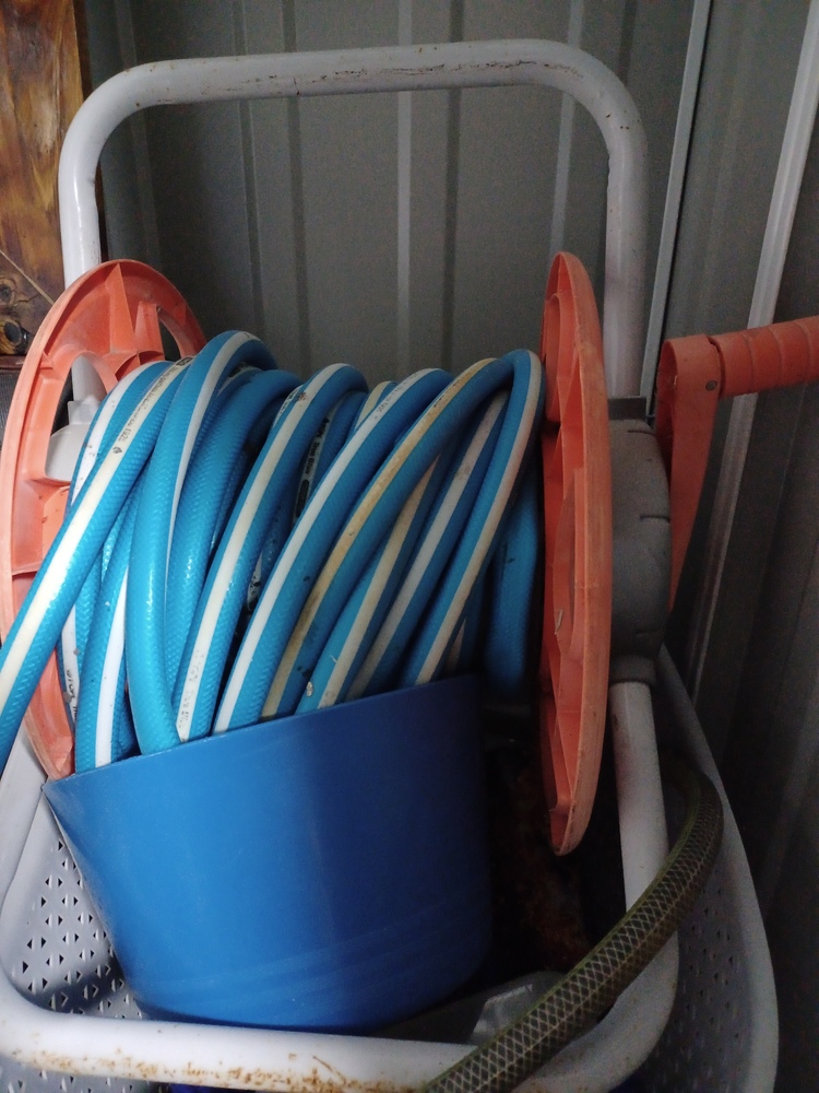 Garden hose on hose reel