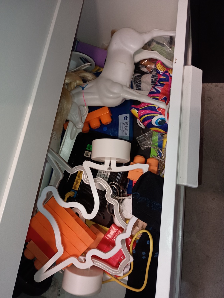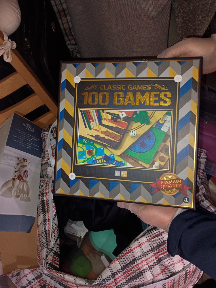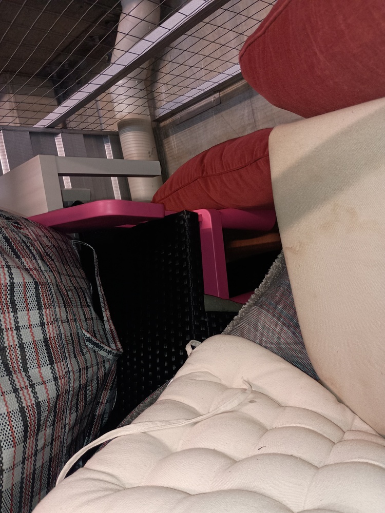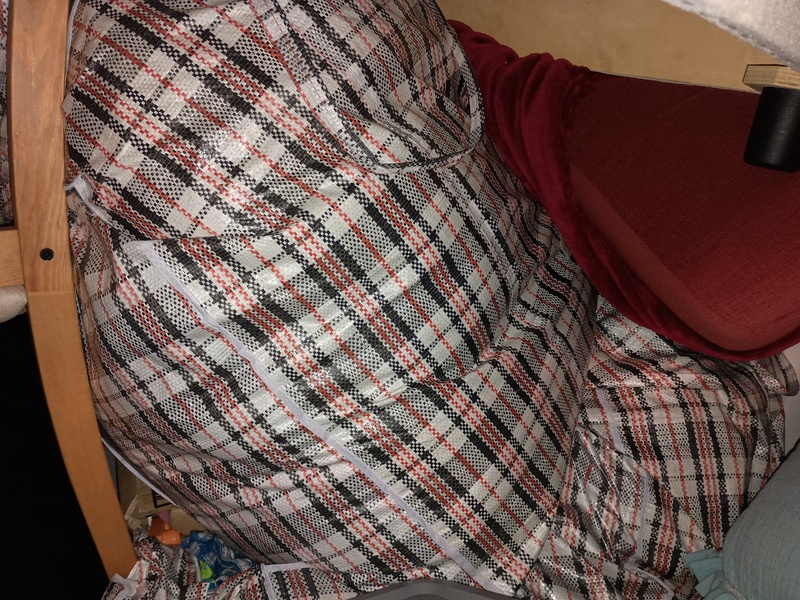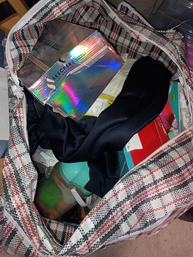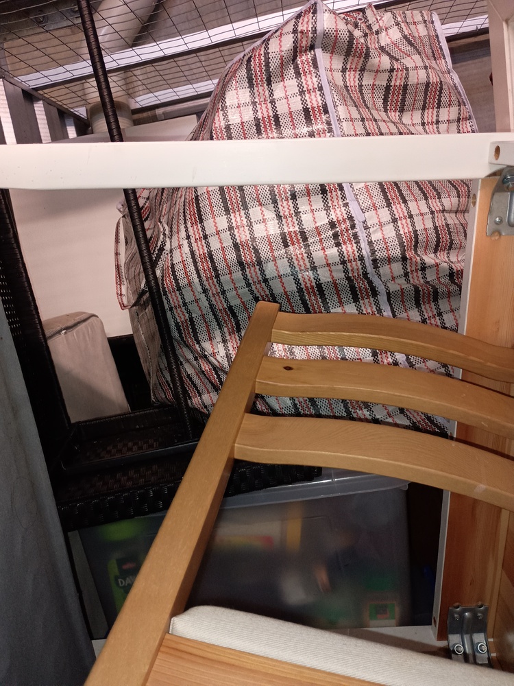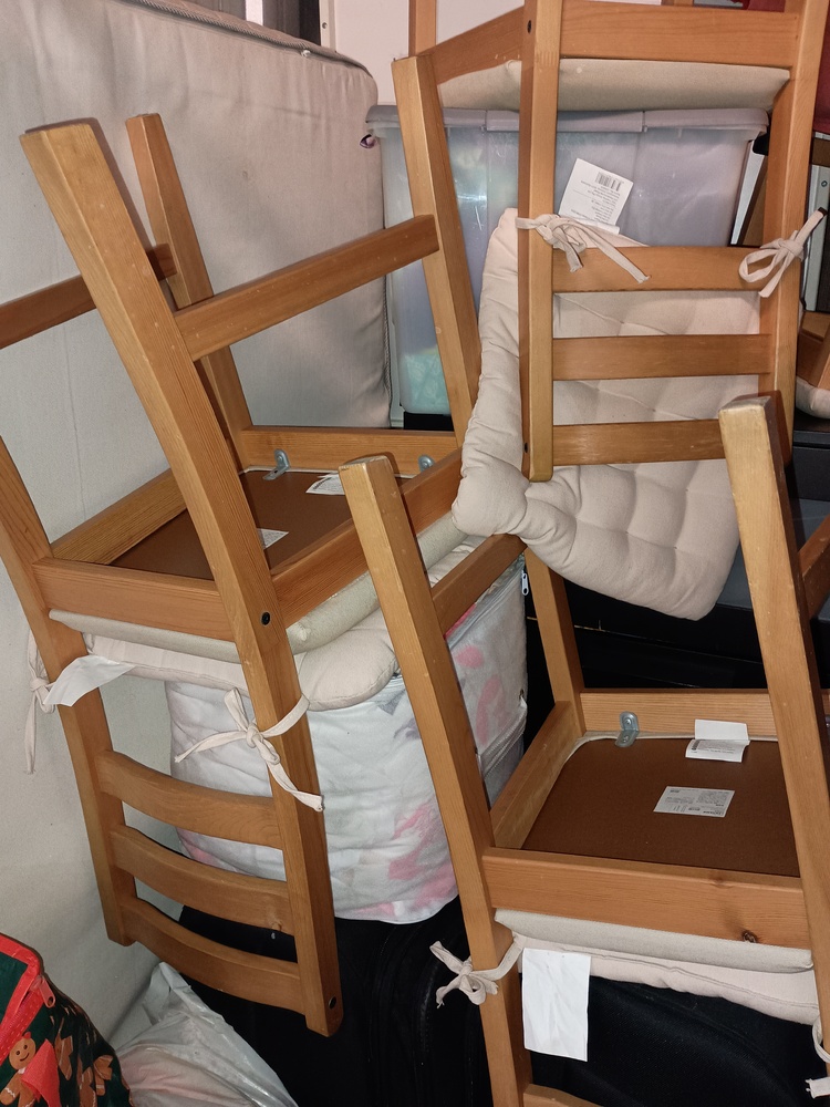 Wooden chairs , Chest of drawers, Kids game , Bags of clothes, Bike helmet , tool kit, Mattress, Bed frame , 2 suitcases of clothes