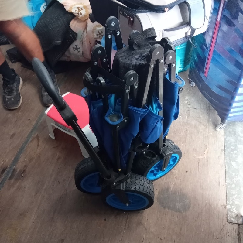 Beach umbrellas, Beach Chairs, Pull along beach trolley cart