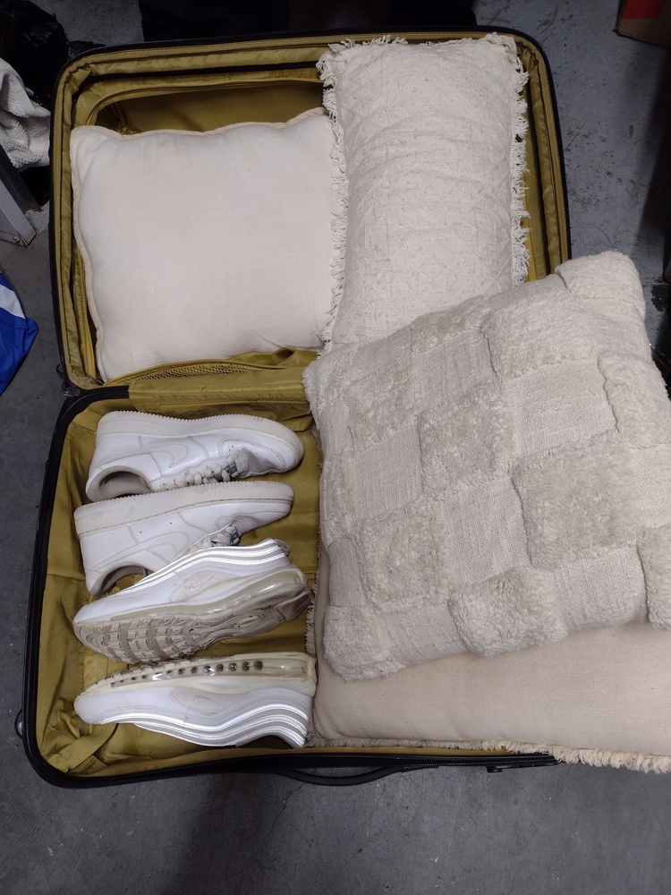 1 suitcase of pillows and 2 pairs Nike shoes