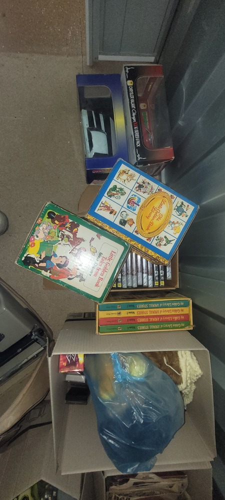 Model car x 2, Assorted children’s books, Assorted DVD’s, Assorted playing cards, Assorted LP’s, Assorted drink bottles, Assorted games, Lego car, Hot Wheels pack, Assorted books & Magazines, Assorted board games, Puzzle x 2 & Type writer. Personal Effects.