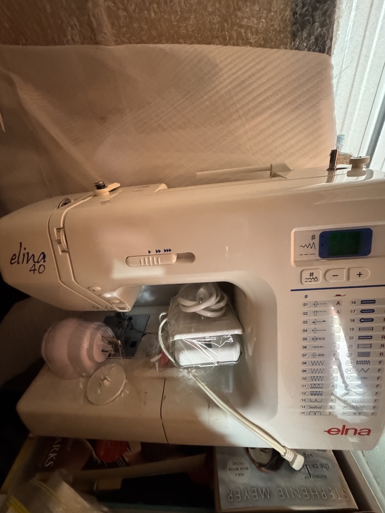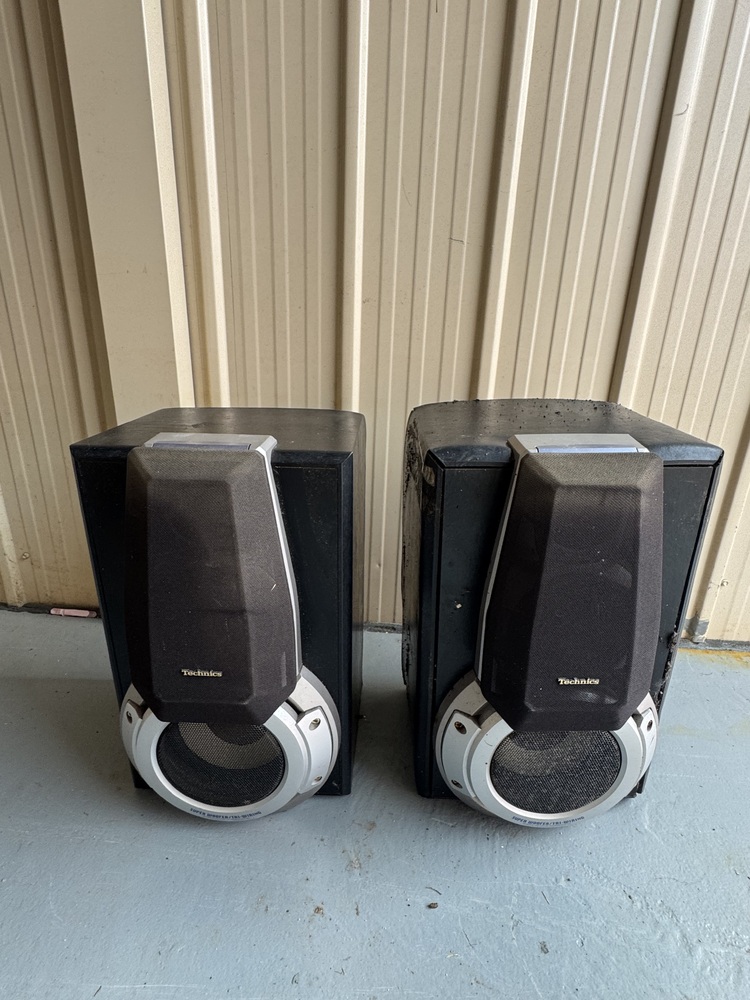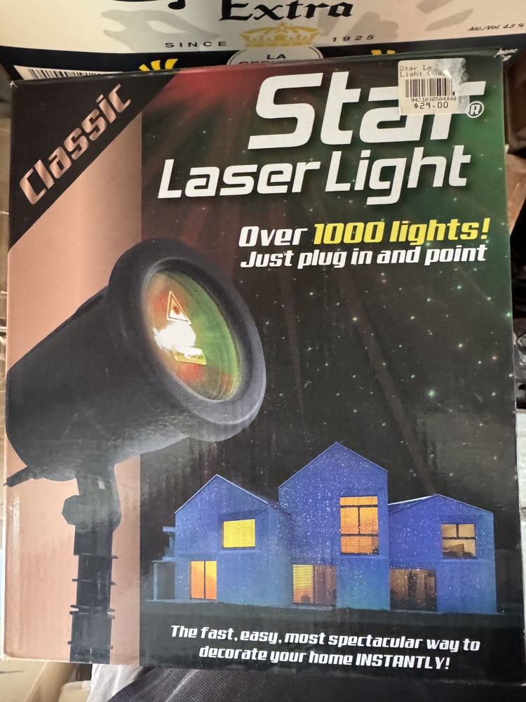 Speakers, star lazer light, sewing machine, mirror, artwork, drill and sander books, ect.