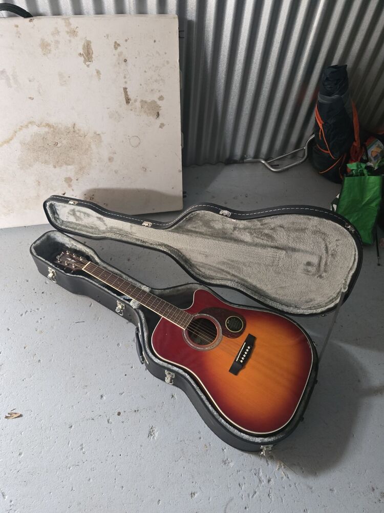storage space contains guitar, Foldout table and other misc items
