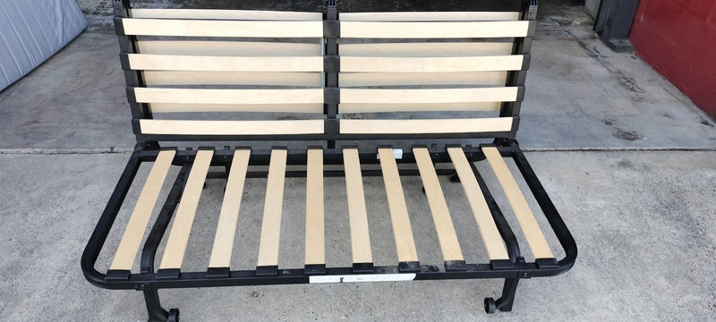 Folding divan bed with grey cushions