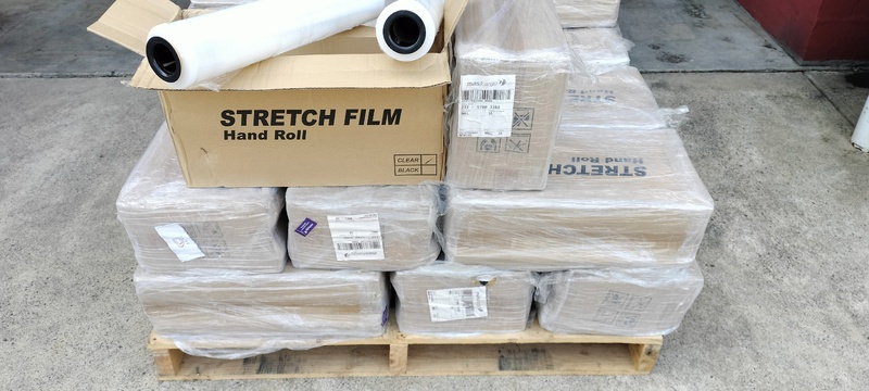 Approx. 120 rolls clear pallet stretch wrap, hand roll