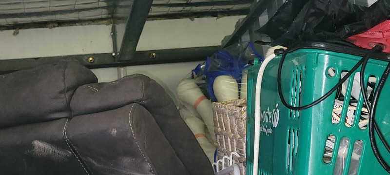 Washing Machine, Dryer, Fridge, Mattress, Desk, Recliner chair, Walker, Heater, Fan, Dining chair, Assorted household items, Vacuum, Assorted cane baskets, Assorted washing baskets, Assorted garden tools, Assorted kitchen items, PS4 console, Fabric bed frame, Hose, Wall art, Mirror x 4, Bin, Assorted shoes, Assorted clothing, Assorted electrical cords, Rug, Assorted stuffed toys, Assorted unopened plastic containers, Crowbar, Bag of bowling pins & Assorted manchester.
