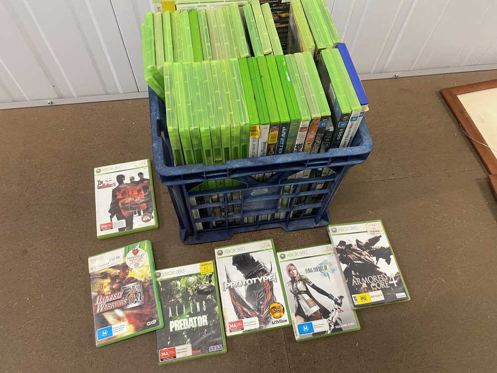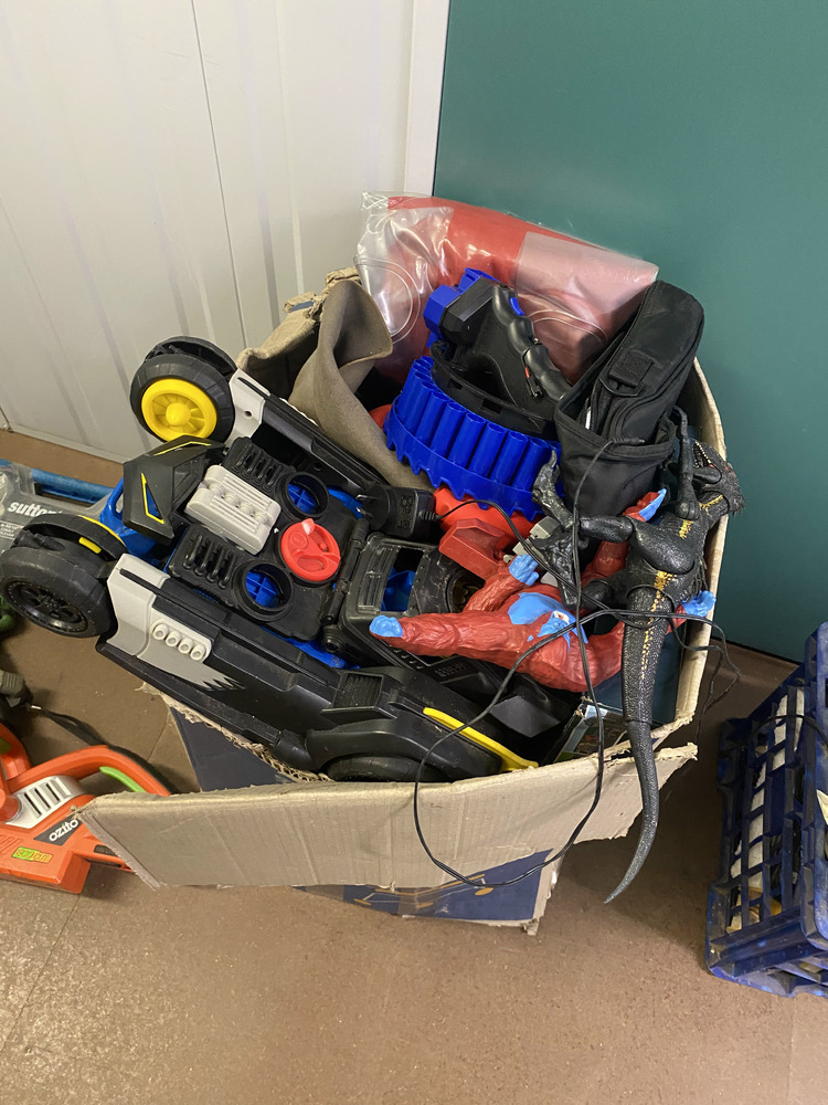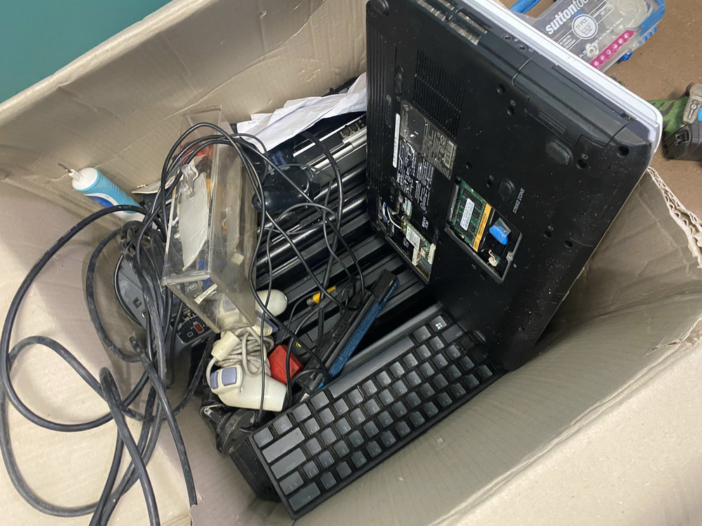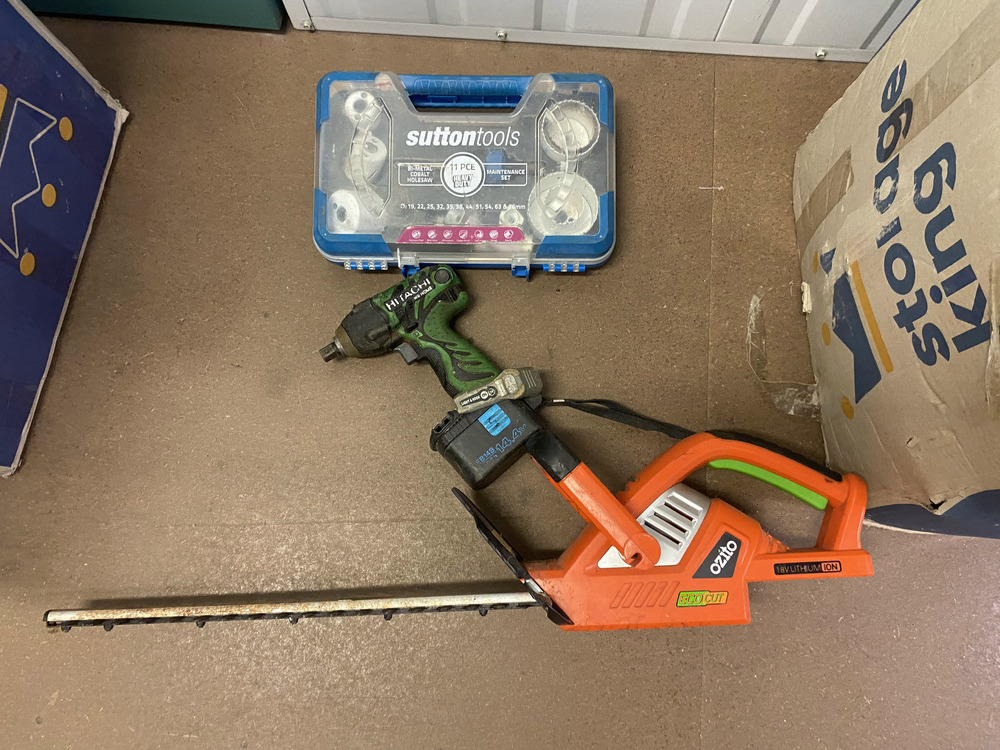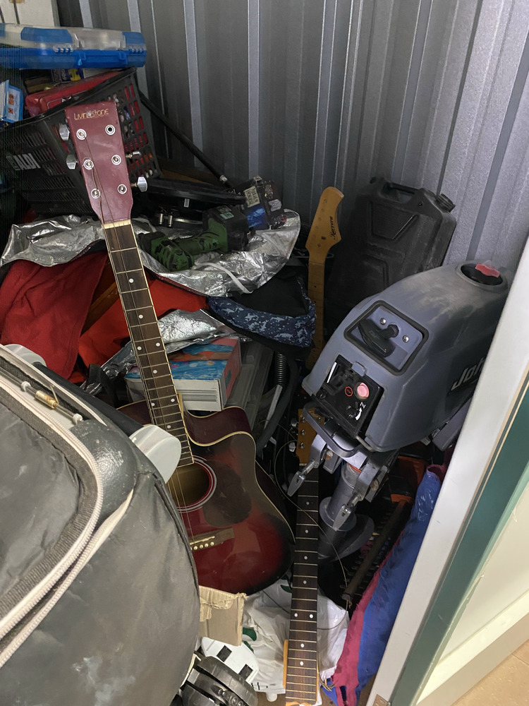 Stirling camp fridge, Fridge, Washing machine, 3.3 Johnson Outboard Motor, Empty tool containers, Crate of assorted parts, Large and small Guitar missing stings, Guitar Handle, Motor Cycle Helmet, Laptop case, Crate of Assorted items, 2 Boxes of Assorted Toys, Plastic containers of toys, Ozito Hedger, Drill, Hole cutting kit, Box of 10 assorted laptops with parts missing, Subwoofer electrics, Mirror, 4 Artworks, Crate of assorted Xbox games, Bike frame, Mixer Board, Ramp, 2 Speakers, Small BBQ, Helmet, Small Chest, 3 Motor Cycle Wheels, 3 Skateboards, Filter, Assorted Fishing Rods, Assorted Household items.