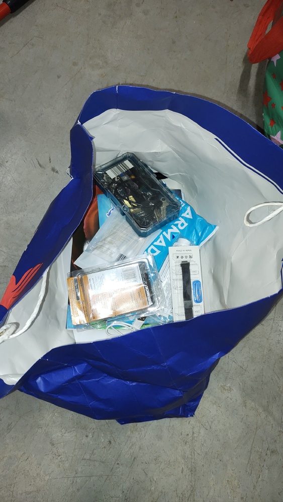 1 Vivitar 20 MP Digital Camera, 12 Duracell AA batteries, 1 bag of cleaning agent, Anko Sage Green 12 piece dinner set, Lockable Latch and hinges gate kit, 1 pair of NIKE AIR shoes, 48 colours dual tip brush pens, 1 XCD camera stand, 1 HAVIT speaker, 3 bags of clothes, 16 solar wall lights, 1 AUTEL Maxisys pad, 2 hammers, 1 screw driver, 1 HP printer, 1 bag of blanket, 1 bag of miscellaneous items, 2 boxes of miscellaneous items